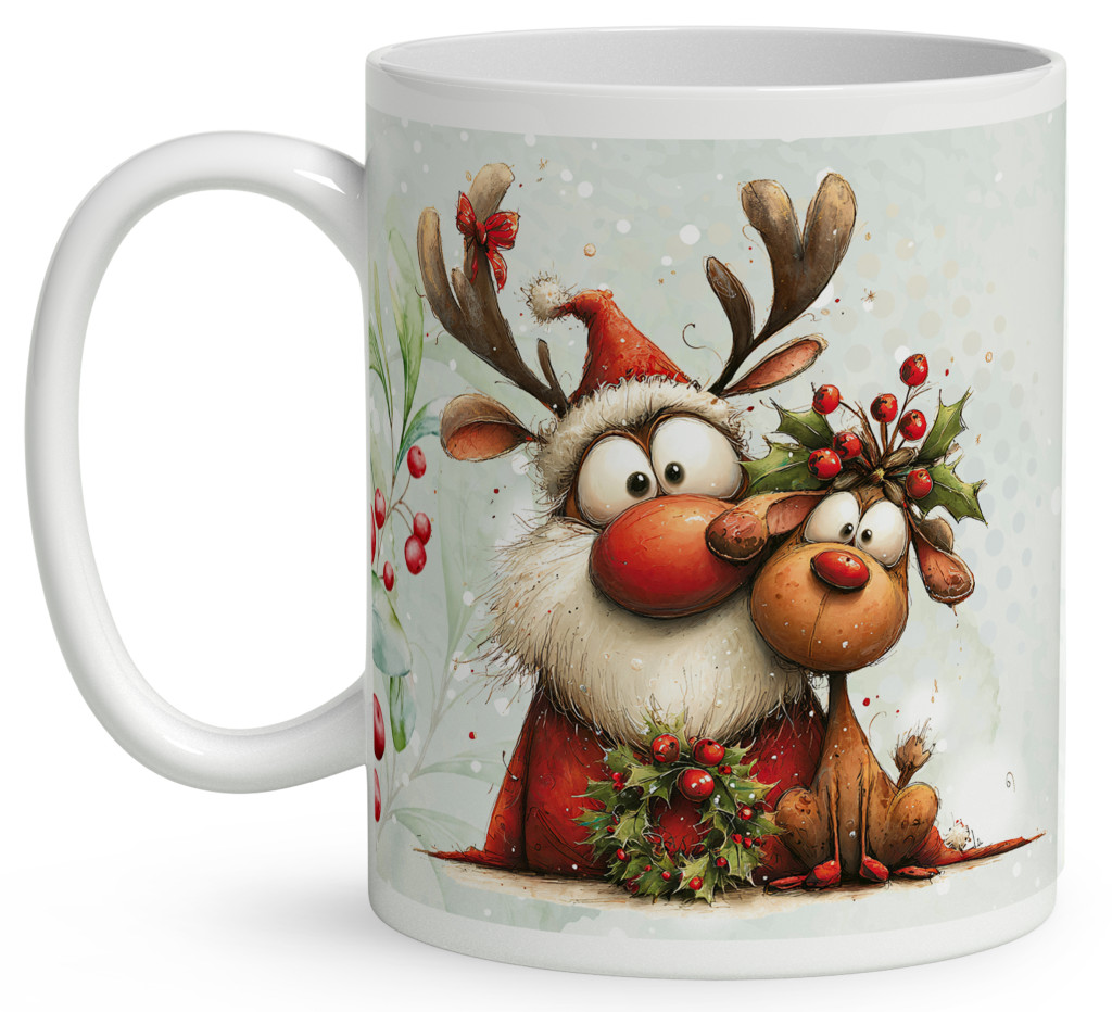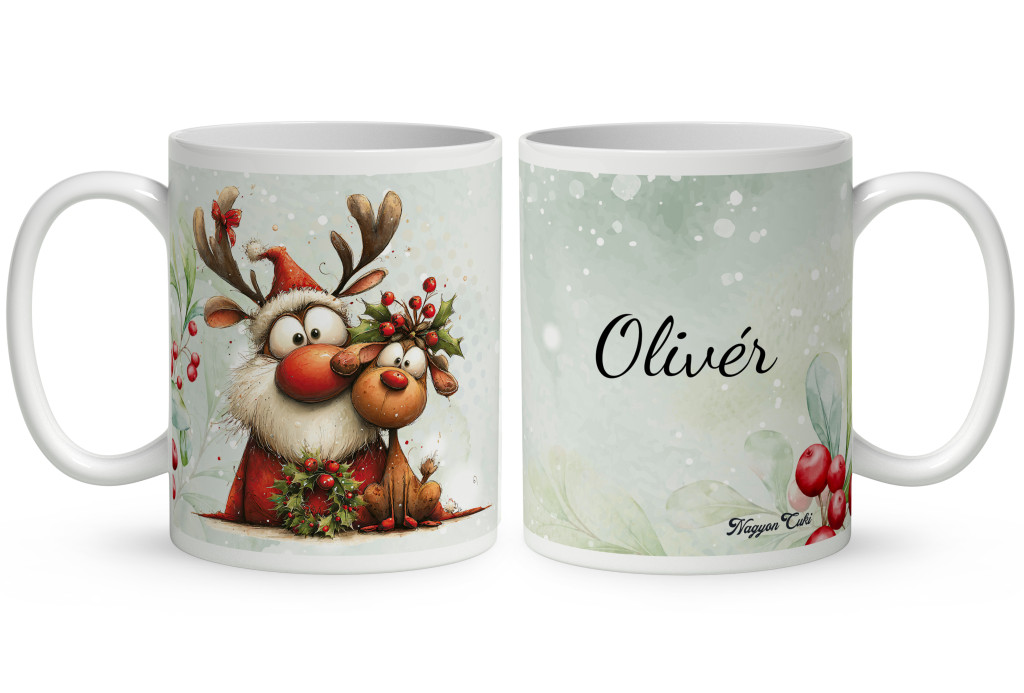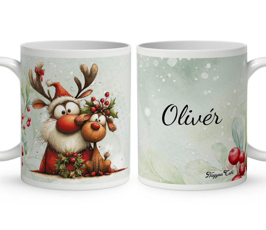 Névvel kérhető - Cuki karácsonyi Mikulás és Rudolf mintás Bögre | Névre Szóló Karácsonyi Ajándék | nagyoncuki.hu