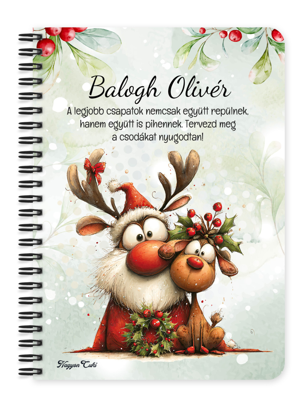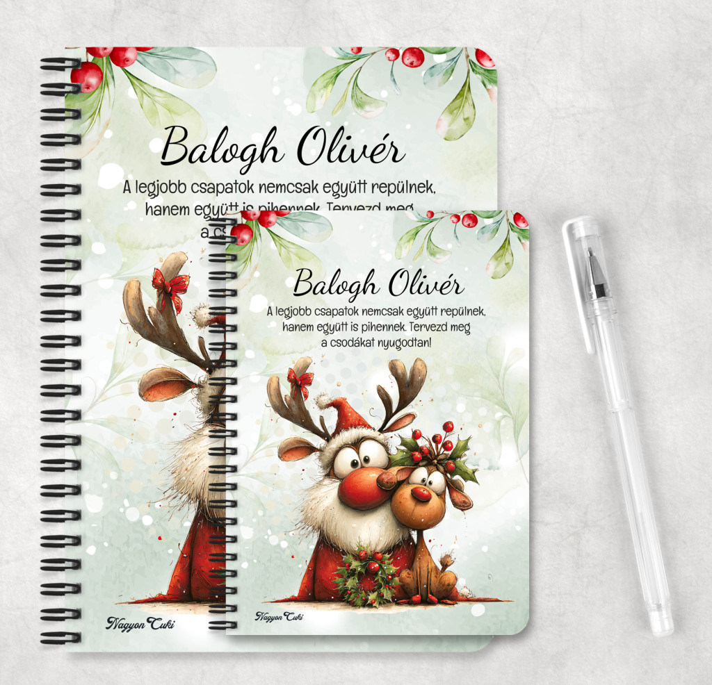 Rendeld meg most ezt az egyedi, névre szóló karácsonyi Télapó és Rudolf mintás füzetet, és vigyél egy kis extra téli örömet és inspirációt a mindennapokba!...mert mindenkinek jár egy kis cukiság.