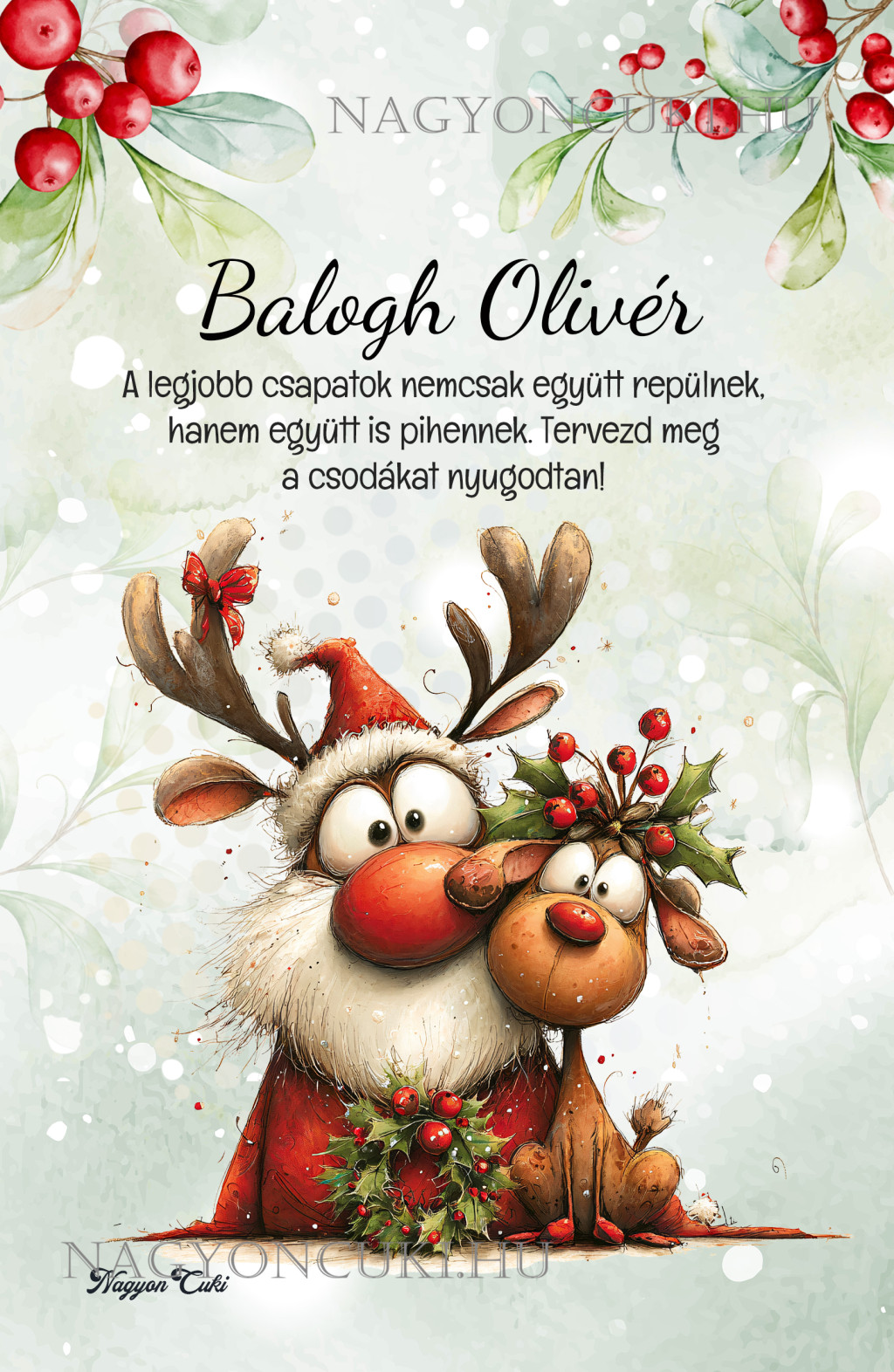 Képzeld el azt a mosolyt és az ünnepi ihletet, amikor egy olyan füzetet tartasz a kezedben, amely nemcsak a teendőid és jegyzeteid rendszerezésére szolgál, hanem az ünnepi készülődés örömét is tükrözi! Ez a különleges, névre szóló, egyedi tervezésű Cuki Karácsonyi Télapó és Rudolf a szarvas mintás füzet a meghitt kuckózás, a kreativitás és az Erdei Varázs kollekció elragadó ünnepi darabja. Egy apró, szeretetteljes gesztus, amely a tervezést, a munkát és a jegyzetelést is fénnyel tölti meg, inspirációt adva minden sorhoz. Kiváló ajándék ötlet karácsonyra – legyen szó nőről, férfiról, vagy gyermekről – aki értékeli a személyes és lélekemelő meglepetéseket!