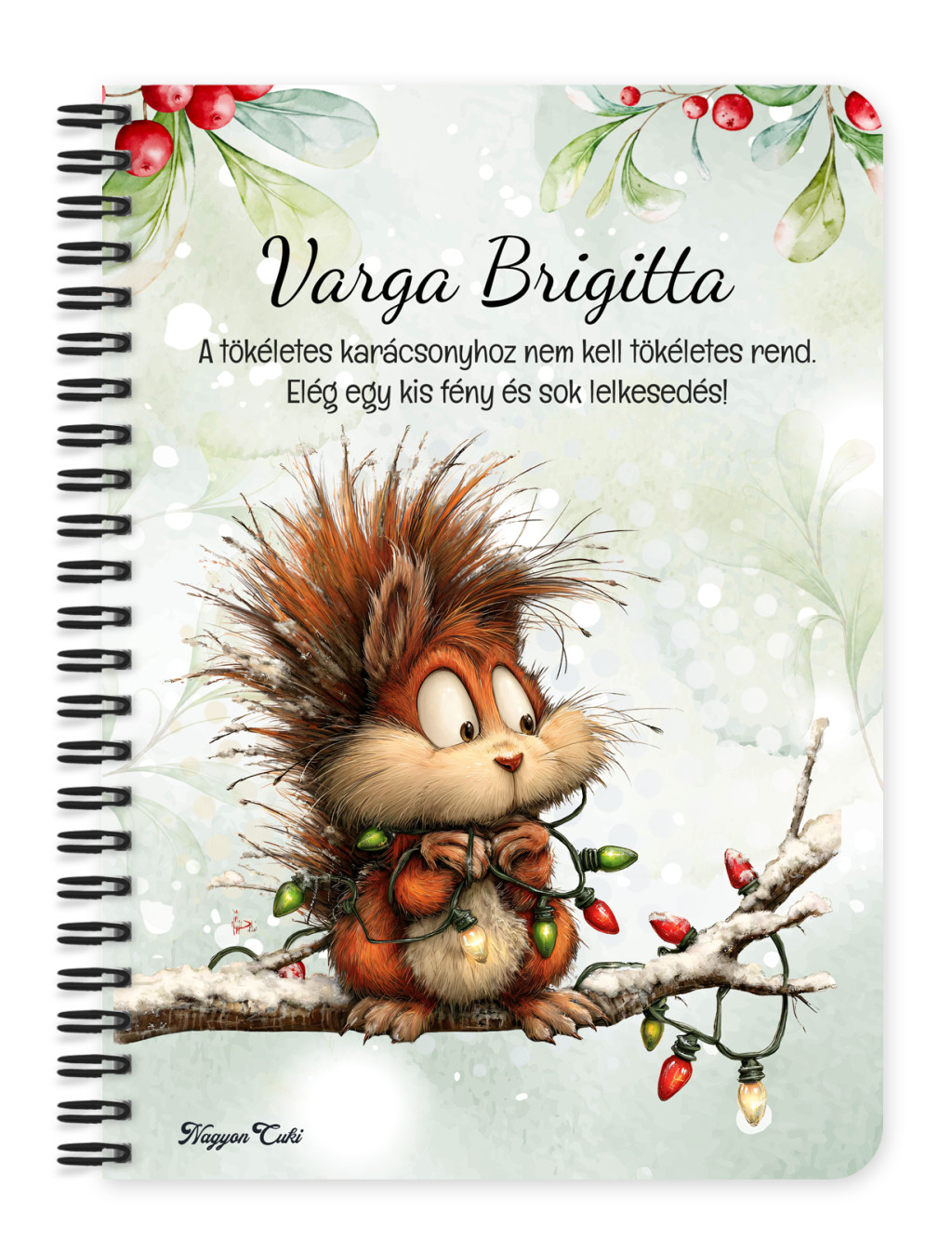 Névvel & Idézettel Kérhető Cuki karácsonyi mókus és az égősor mintás Füzet / Napló | Névre Szóló Karácsonyi Ajándék & Személyes Jegyzetfüzet | nagyoncuki.hu
