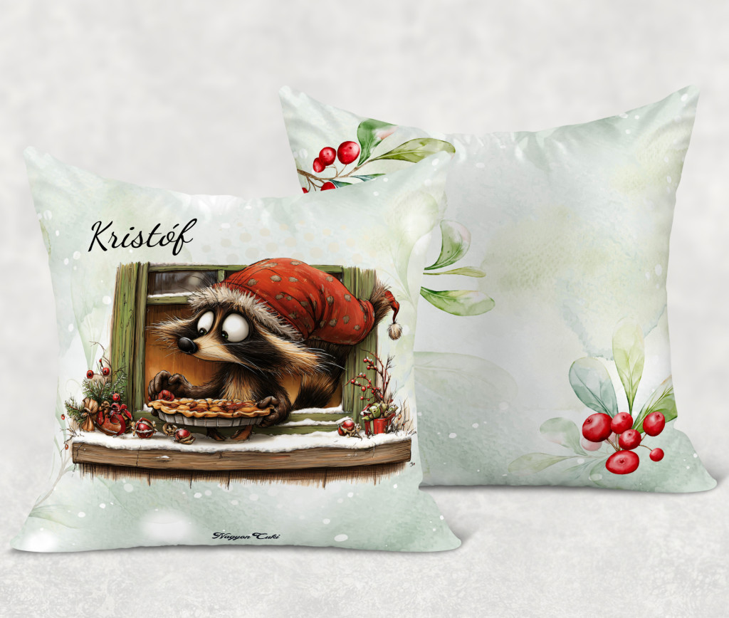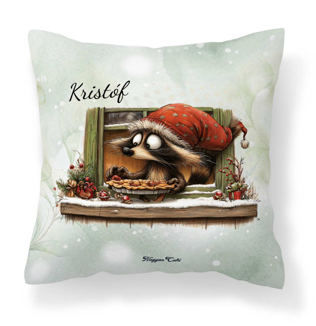 Névvel kérhető - Cuki karácsonyi mosómaci és a süti mintás különleges és egyedi párna | Névre Szóló Karácsonyi Ajándék & Téli otthon dekor | nagyoncuki.hu