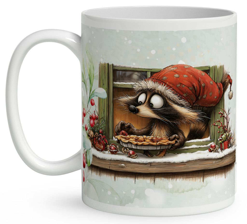 Kinek ideális ajándék ez a cuki Karácsonyi mosómedve mintás bögre?