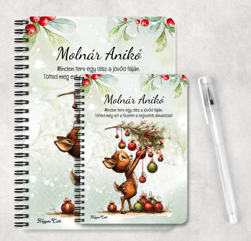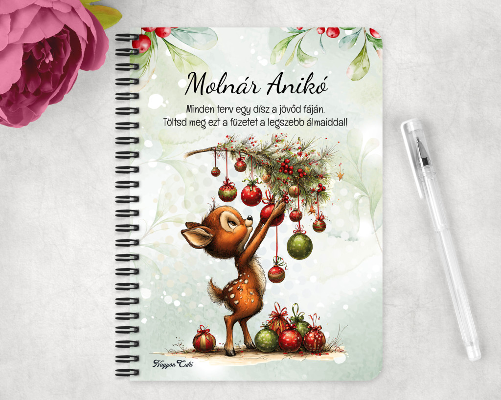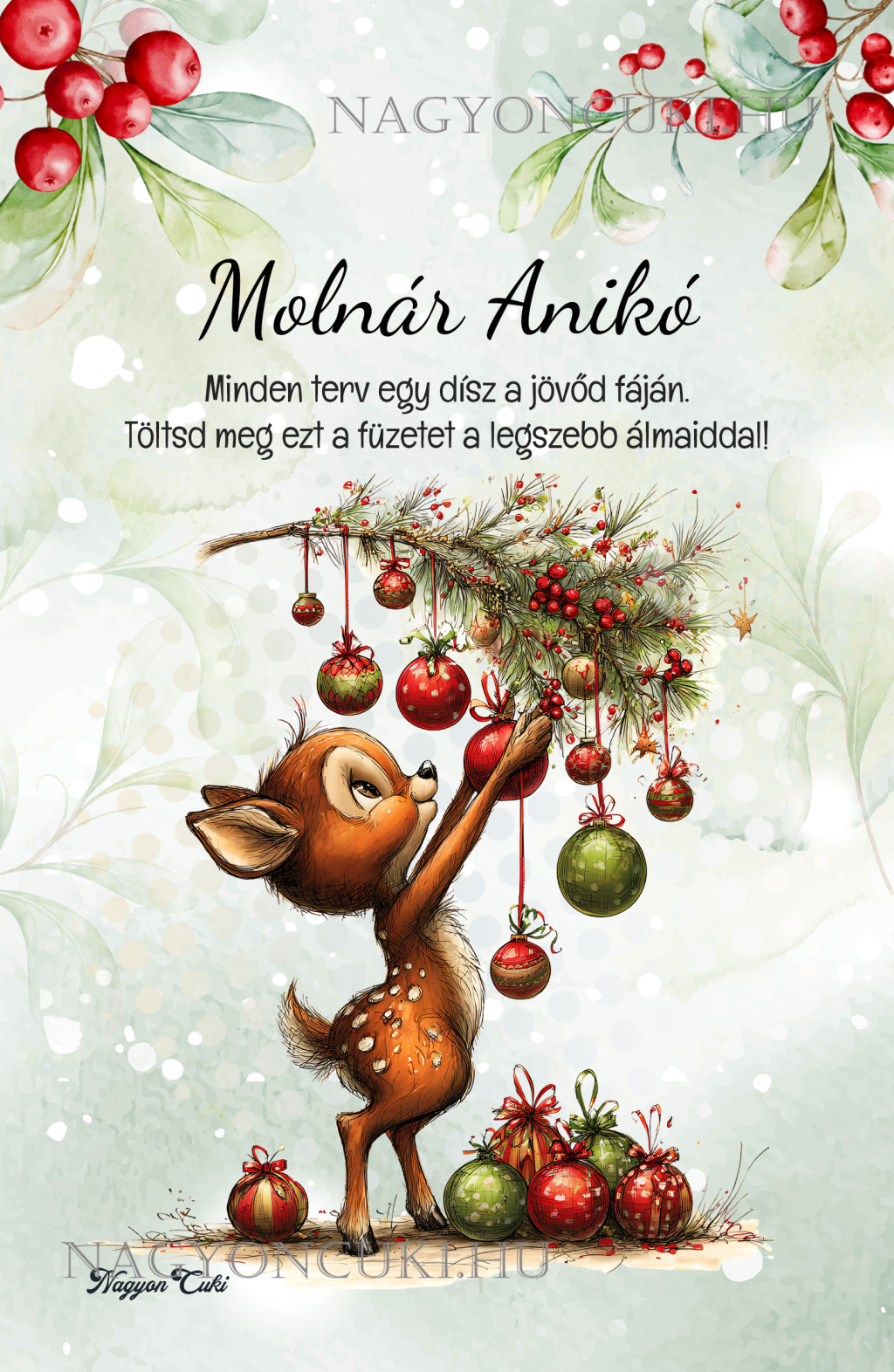 Névvel & Idézettel Kérhető Cuki Karácsonyi őzike és a díszek Füzet / Napló | Névre Szóló Karácsonyi Ajándék & Személyes Jegyzetfüzet | nagyoncuki.hu