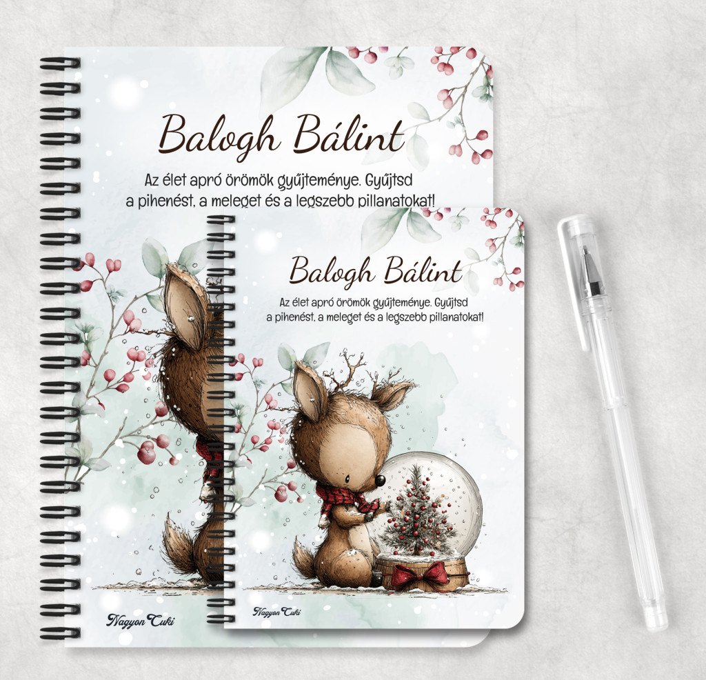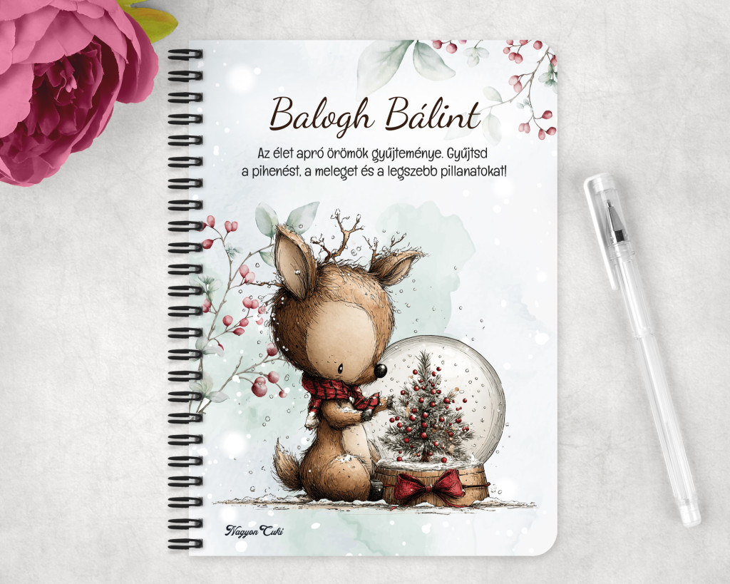 Névvel & Idézettel Kérhető Cuki téli őzike hógömbbel Füzet / Napló | Névre Szóló téli Ajándék & Személyes Jegyzetfüzet | nagyoncuki.hu