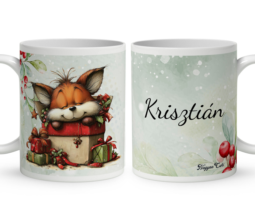Képzeld el azt a varázslatos mosolyt a megajándékozott arcán, amikor egy olyan bögrét tart a kezében, amely nemcsak a kedvenc reggeli kávéjához nyújt társaságot, hanem az ünnepi bájt is tükrözi! Ez a különleges, névre szóló, egyedi tervezésű Cuki Karácsonyi róka mintás bögre a békés kuckózás, a kedvesség és az Erdei Varázs kollekció bájos megtestesítője. Egy apró, szeretetteljes gesztus, amely a hideg téli napokat is fénnyel tölti meg, és inspirációt ad minden kortyhoz. Kiváló ajándék ötlet karácsonyra, Mikulásra, barátoknak, rokonoknak és minden személyes ajándékot kedvelőnek.