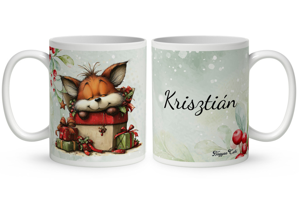 Névvel kérhető - Cuki karácsonyi róka és az ajándékok mintás Bögre | Névre Szóló Karácsonyi Ajándék | nagyoncuki.hu