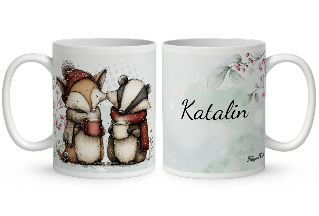 Lepd meg a kedvenc hölgyedet, barátodat, családtagodat vagy saját magadat ezzel a bájos és személyre szabott aranyos téli róka és borz mintás bögrével! Rendeld meg most ezt az egyedi, névre szóló bögrét, és vigyél egy kis extra mesebeli örömöt a mindennapokba!