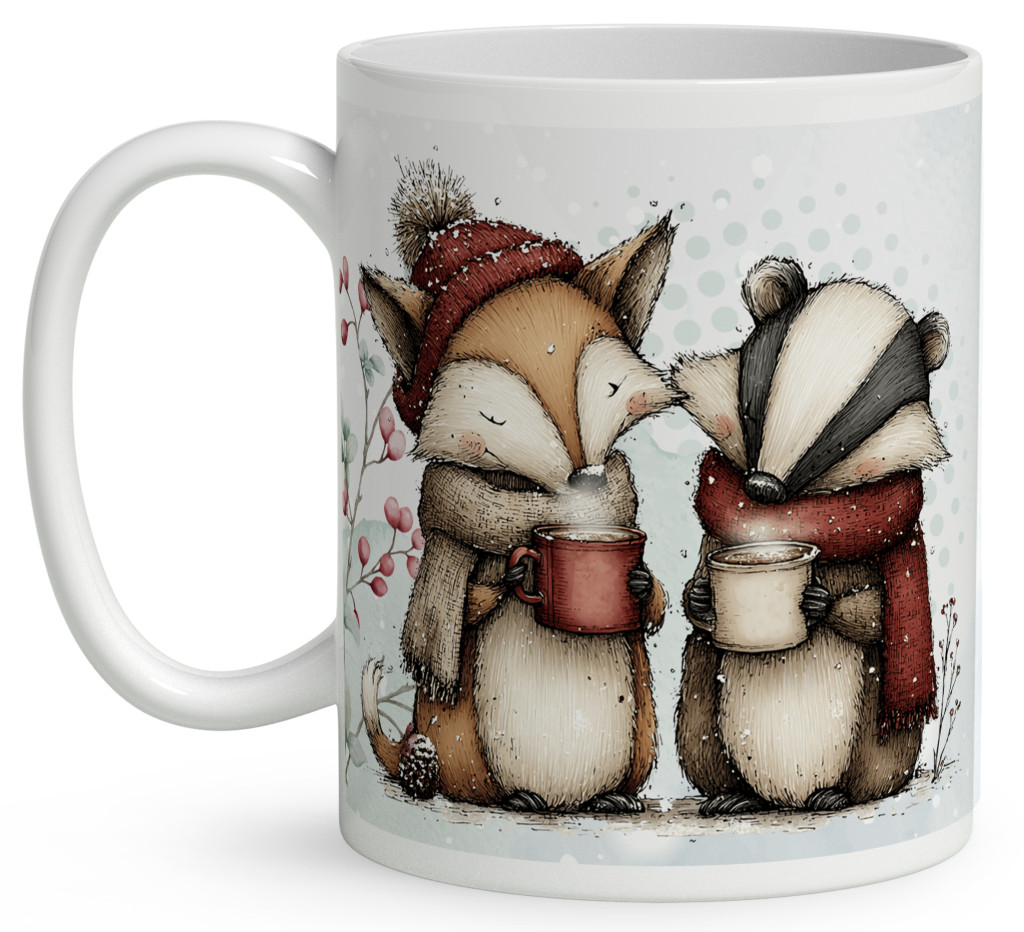 Kinek ideális ajándék ez a cuki Karácsonyi Róka és borz mintás bögre?