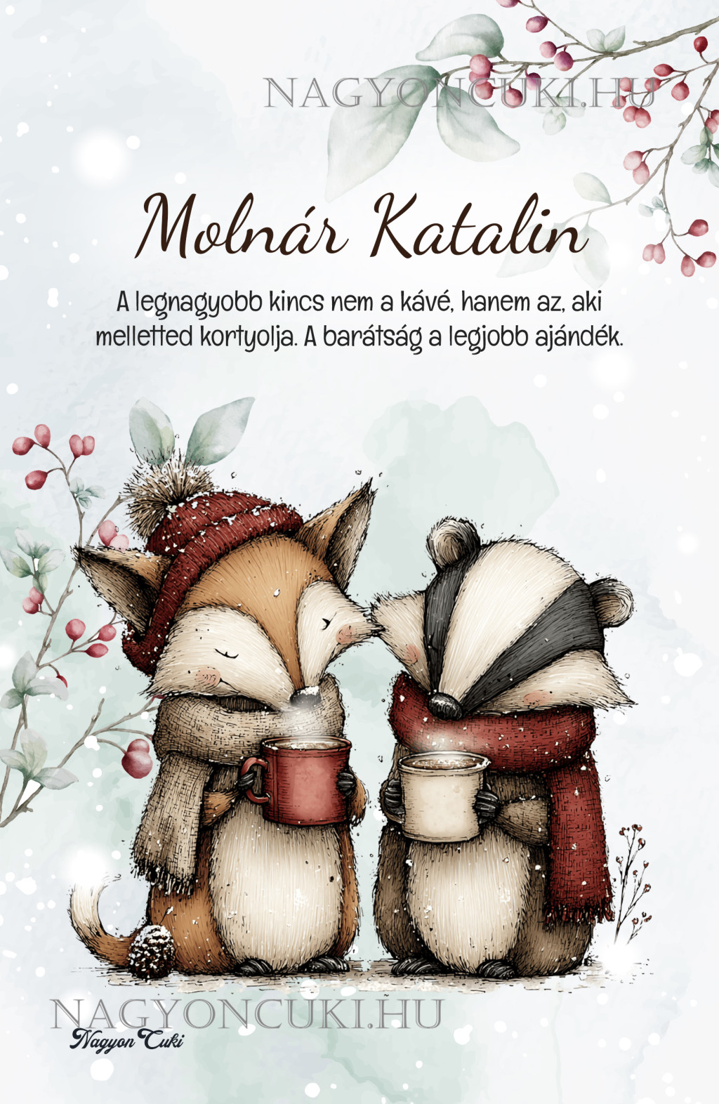 Névvel & Idézettel Kérhető Cuki téli róka és borz Füzet / Napló | Névre Szóló téli Ajándék & Személyes Jegyzetfüzet | nagyoncuki.hu