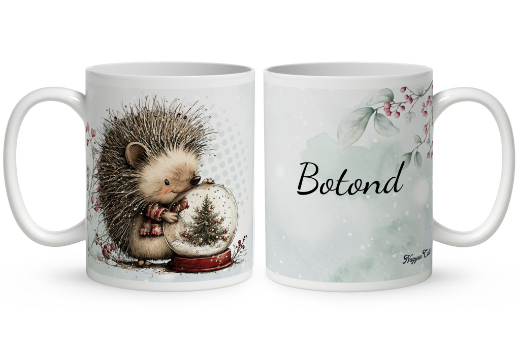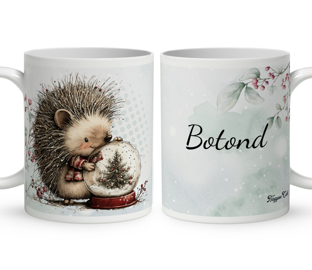 Névvel kérhető - Cuki karácsonyi süni és a hógömb mintás Bögre | Névre Szóló Karácsonyi Ajándék | nagyoncuki.hu