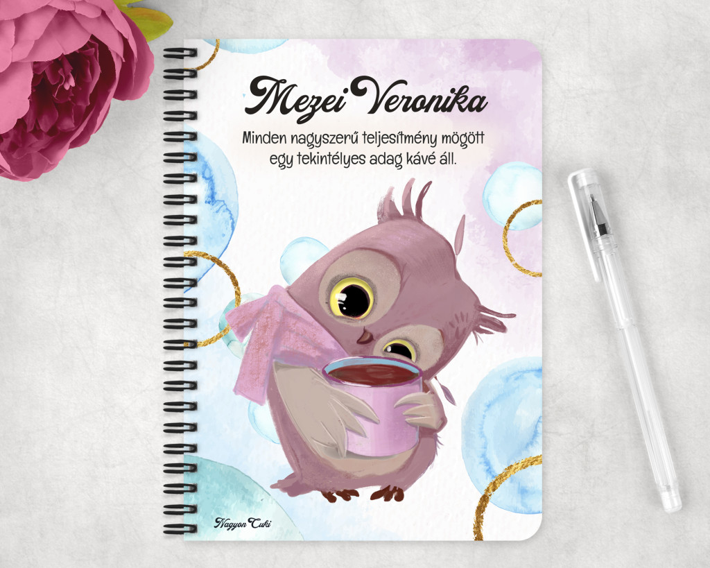 Névvel & Idézettel Kérhető Cuki kávés bagoly Mintás Füzet | Egyedi Ajándék Bagoly Rajongóknak és a Tudás szerelmeseinek | nagyoncuki.hu