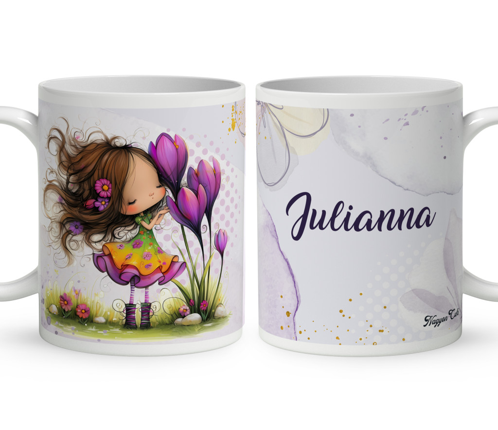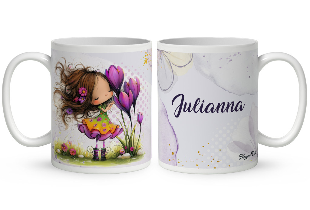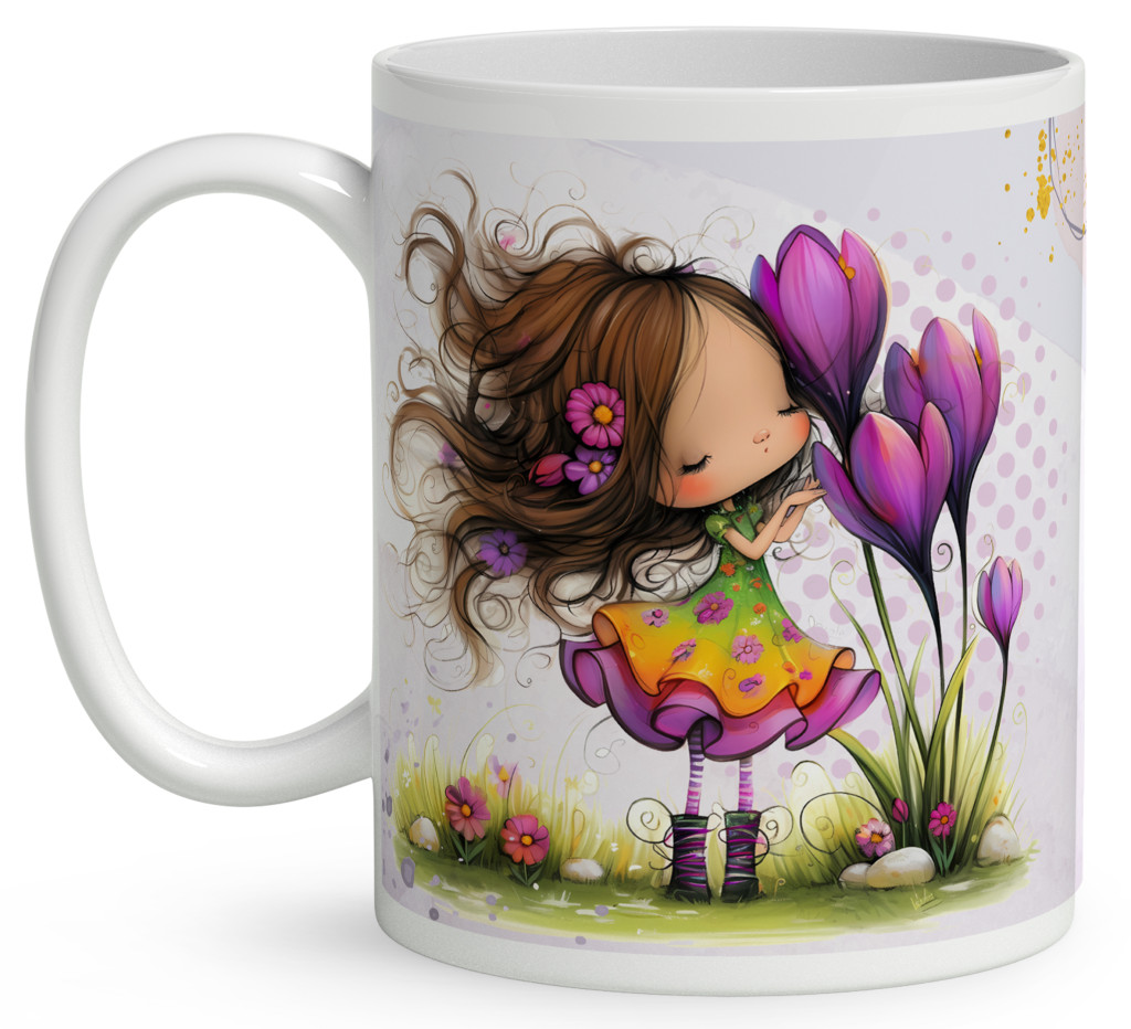 Névvel kérhető - Cuki krókusz virágos tündér mintás Bögre | Egyedi Ajándék Lányoknak és Nőknek | nagyoncuki.hu