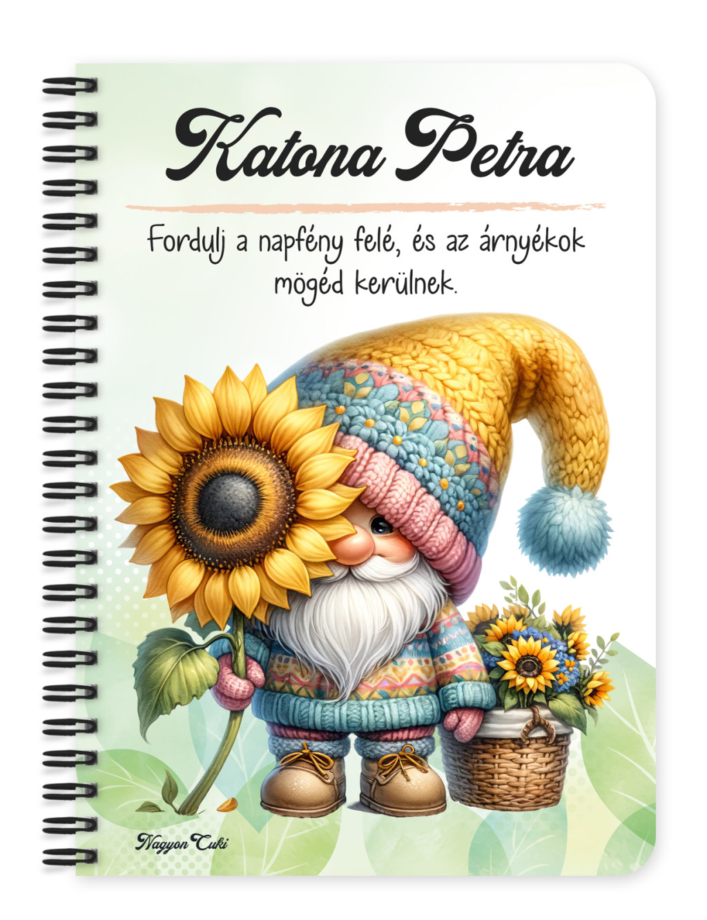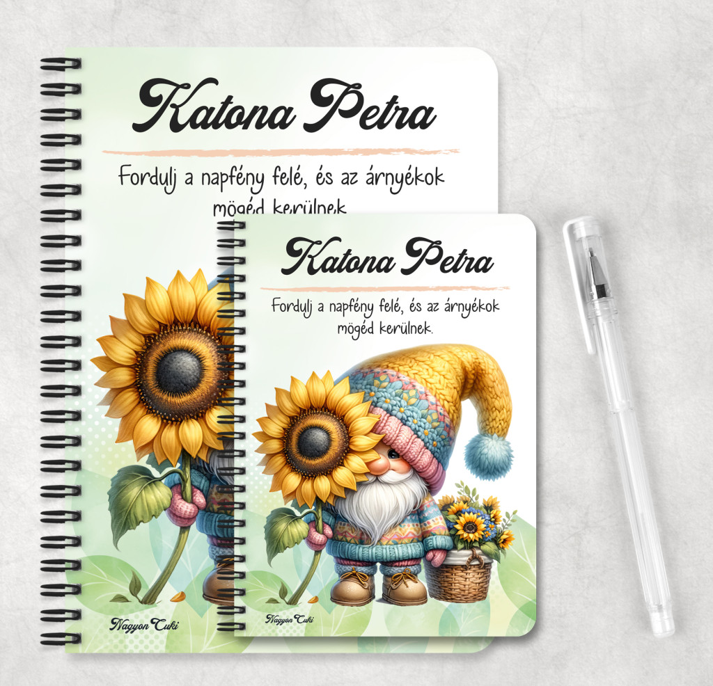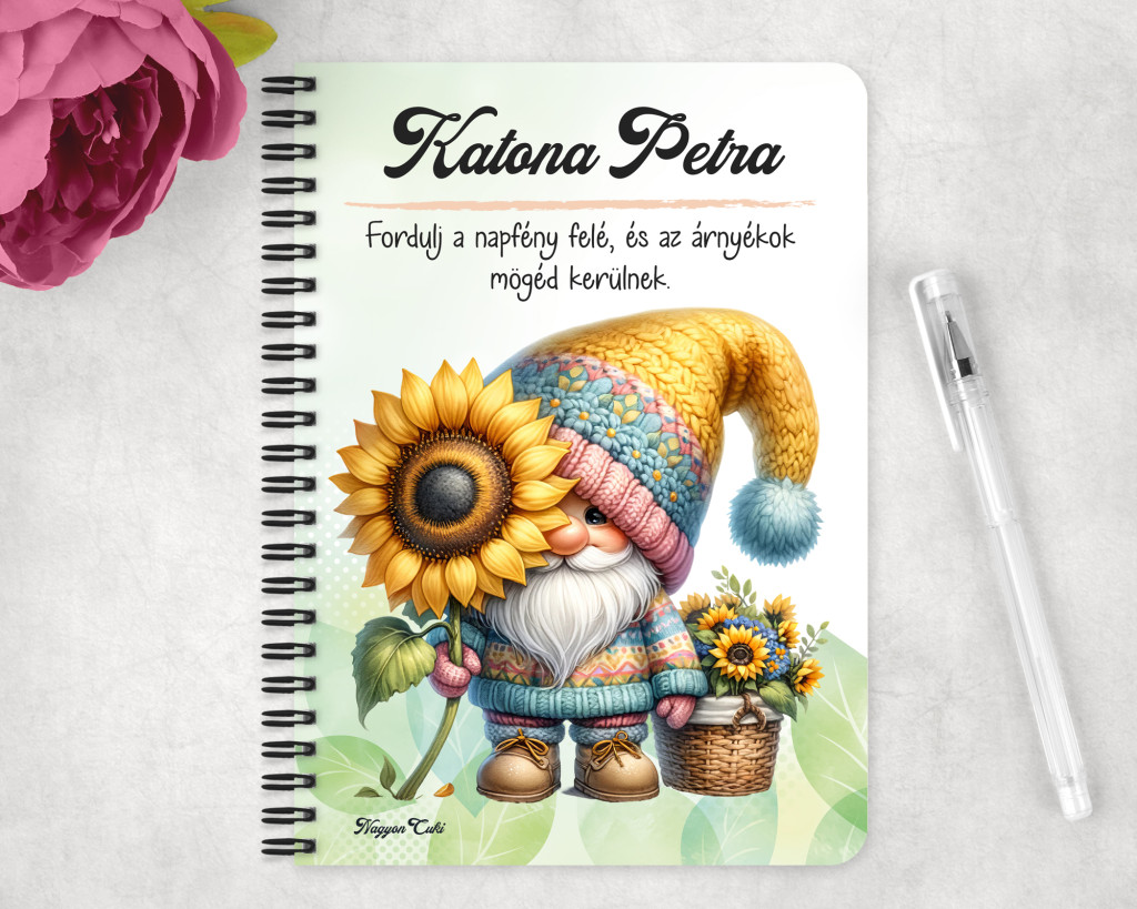 Névvel & Idézettel Kérhető Cuki kukucs napraforgós manó mintás Füzet | Legjobb ajándék Nőknek | nagyoncuki.hu