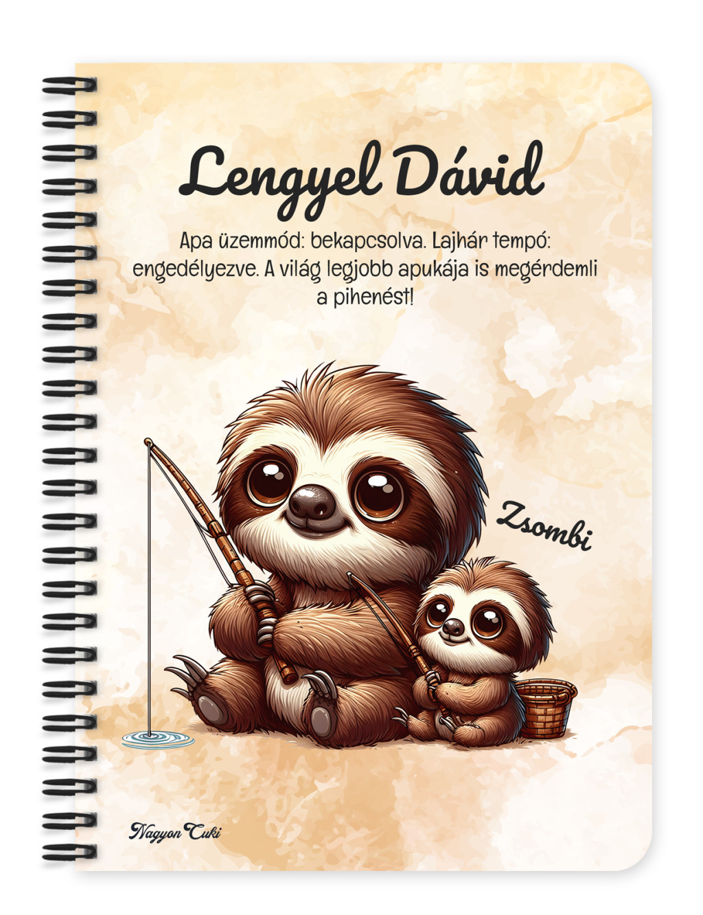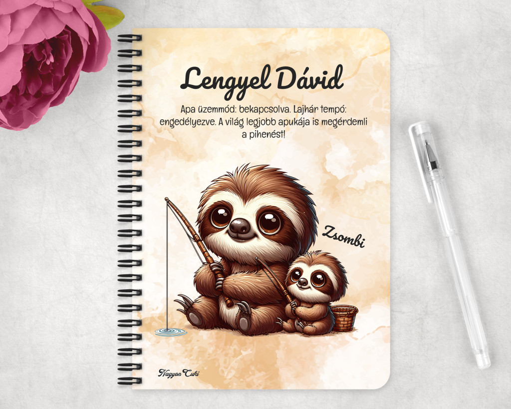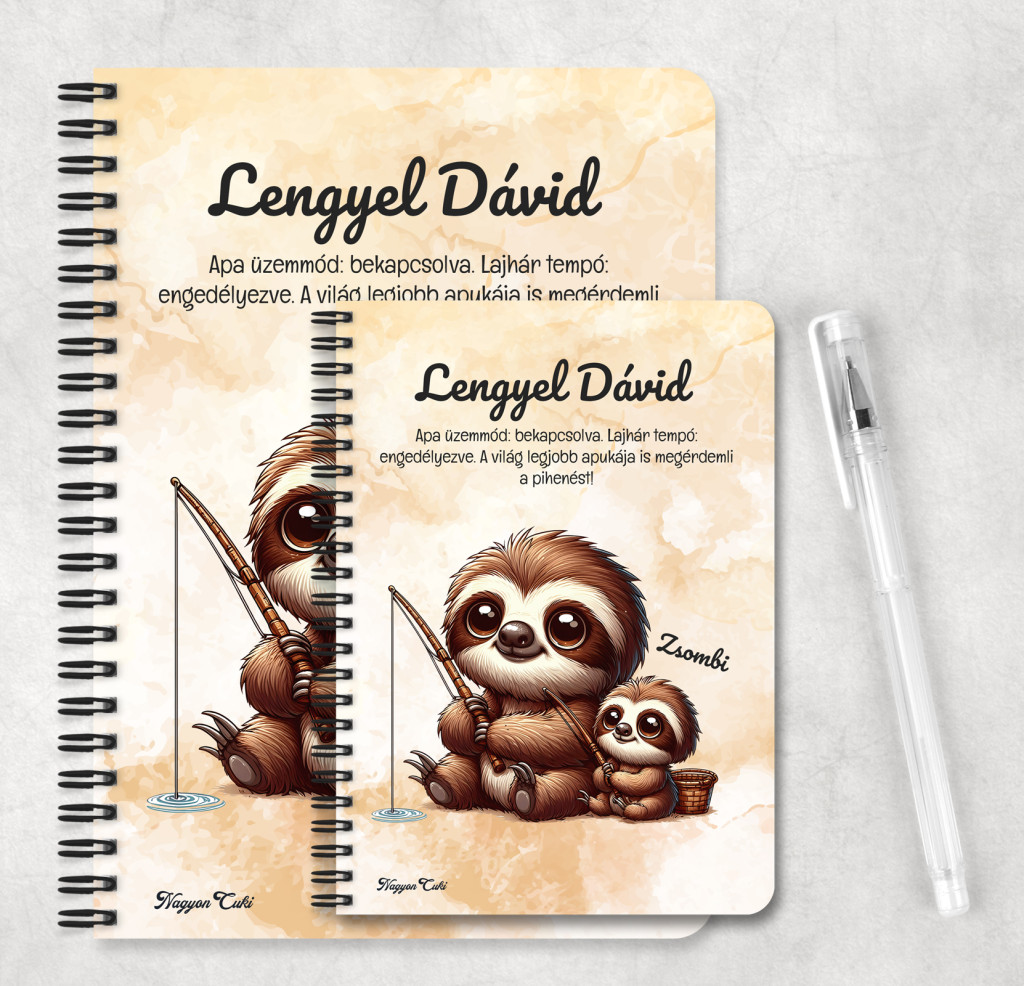 Névvel & Idézettel Kérhető Cuki lajhár Apa és gyermeke horgásznak mintás Füzet | Névre Szóló Ajándék Apáknak & Személyes Jegyzetfüzet | nagyoncuki.hu