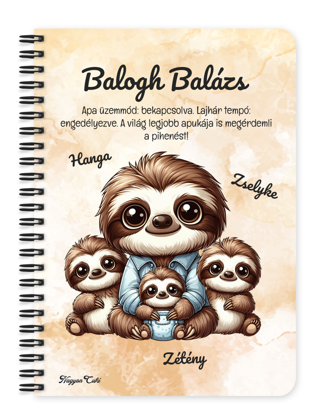 Névvel & Idézettel Kérhető Cuki lajhár Apa és három kis lajhár mintás Füzet | Névre Szóló Ajándék Apáknak & Személyes Jegyzetfüzet | nagyoncuki.hu