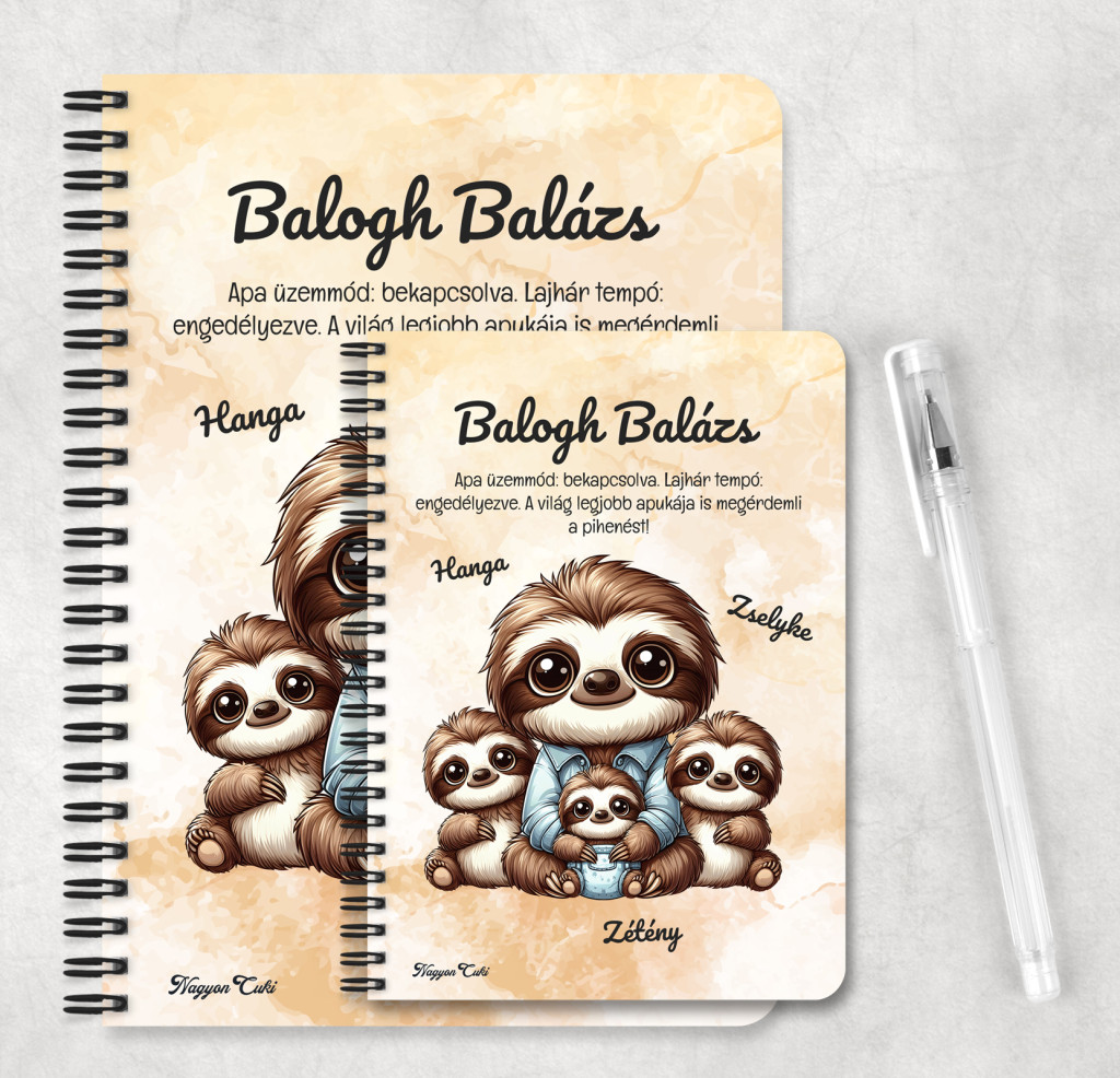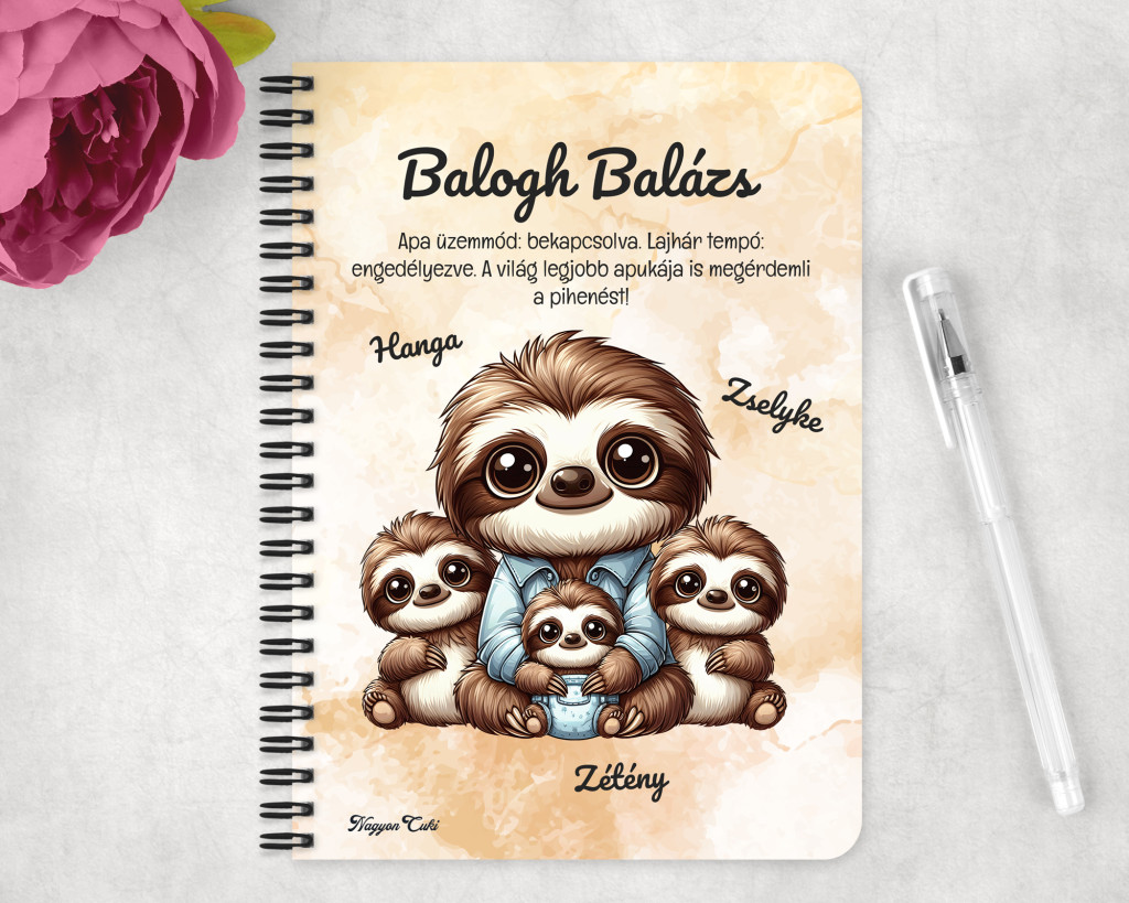 Miért válaszd ezt a személyre szabható lajhár apa mintás füzetet?