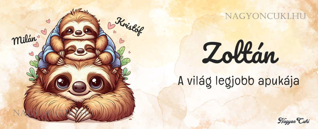 - Teljesen Személyre szabható: Kérd az Apuka nevét a nagy lajhárhoz, és a Gyerekek nevét a kicsikhez! Így válik egyedivé és megismételhetetlenné.