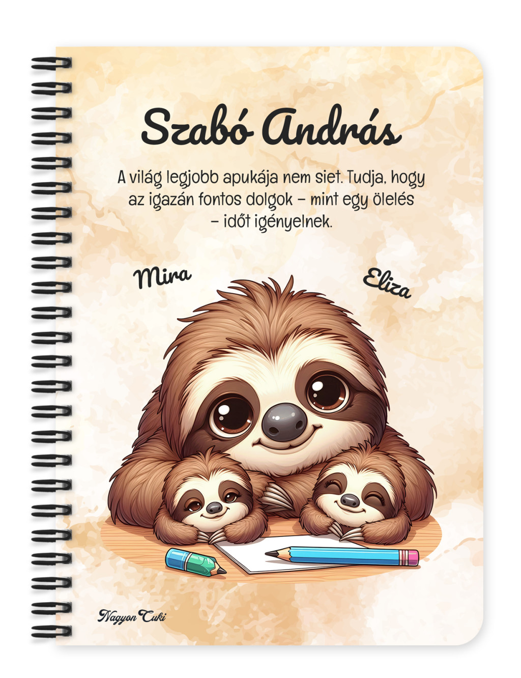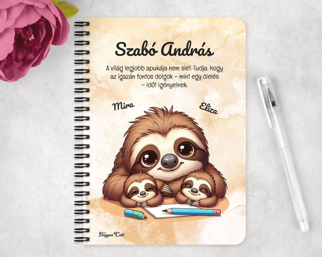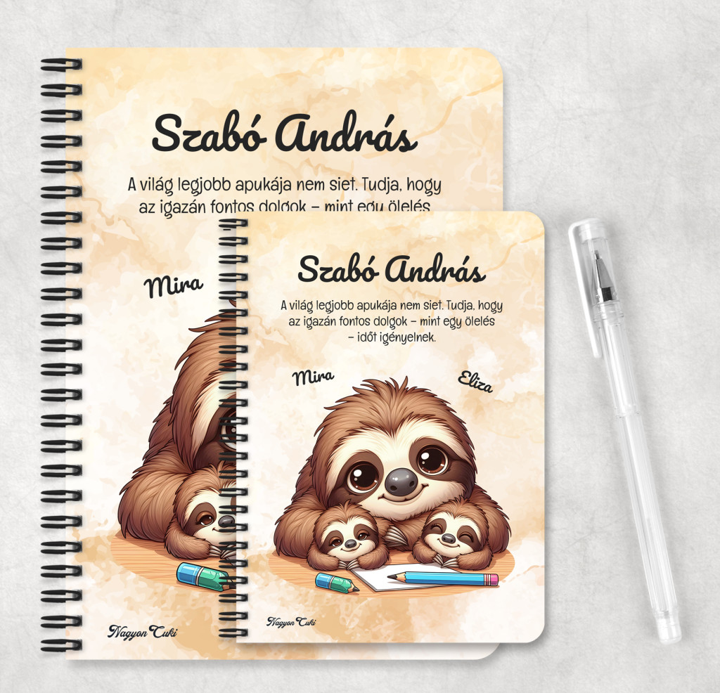 Névvel & Idézettel Kérhető Cuki lajhár Apa és két gyereke mintás Füzet | Névre Szóló Ajándék Apáknak & Személyes Jegyzetfüzet | nagyoncuki.hu