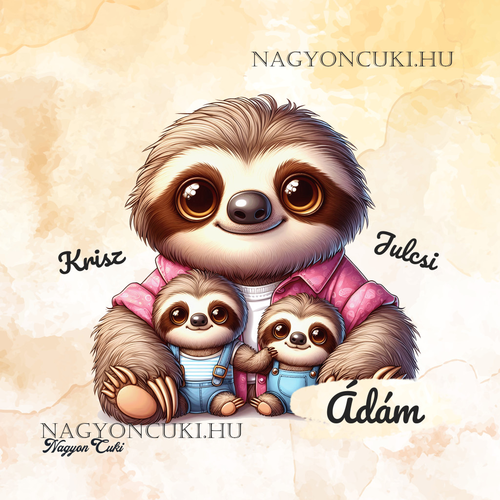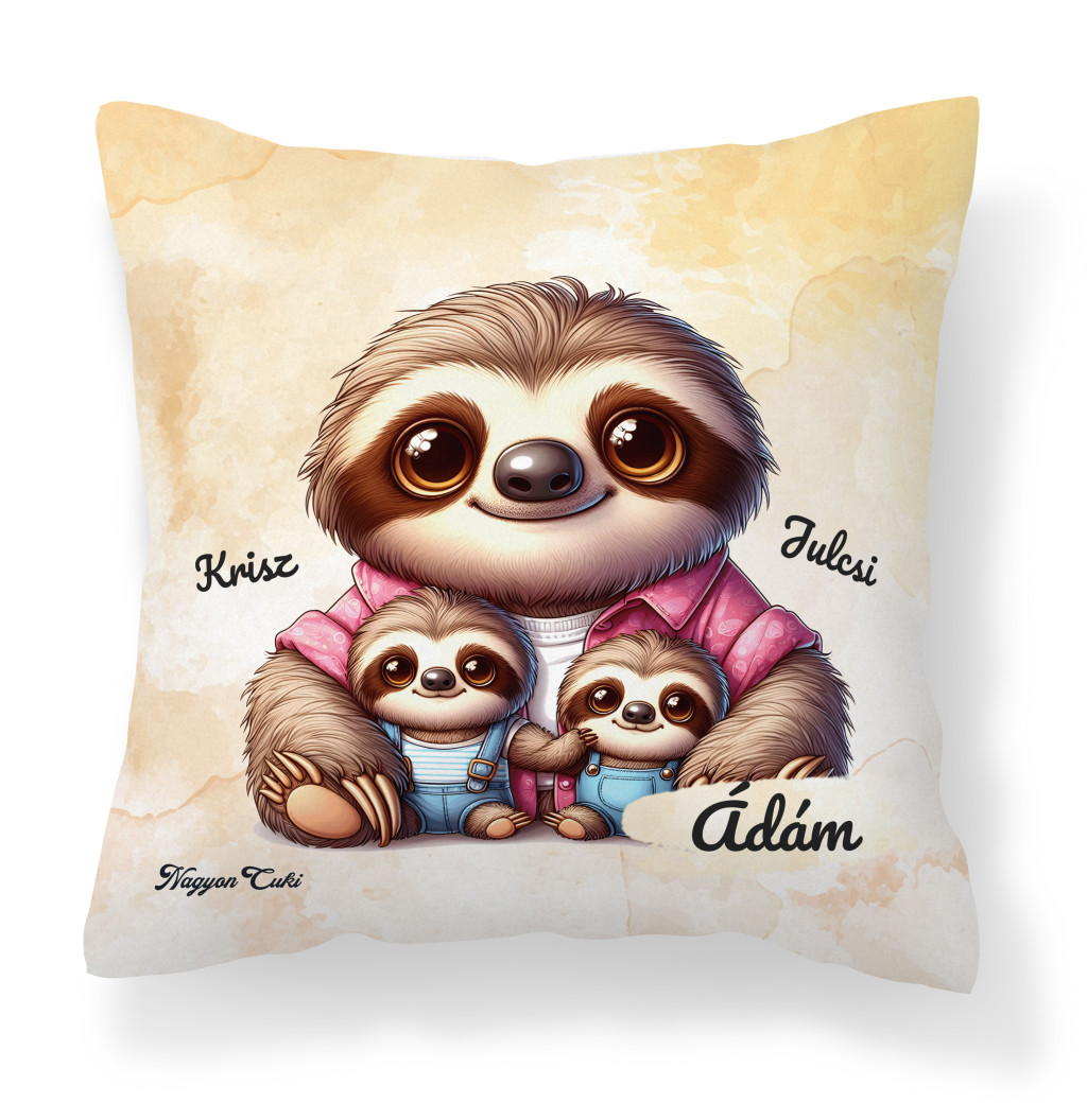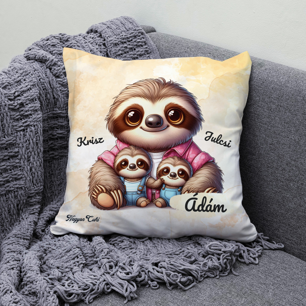 Névvel kérhető - Cuki lajhár Apa és két kis lajhár Párna | A Gondoskodás és Pihenés Ajándéka | nagyoncuki.hu
