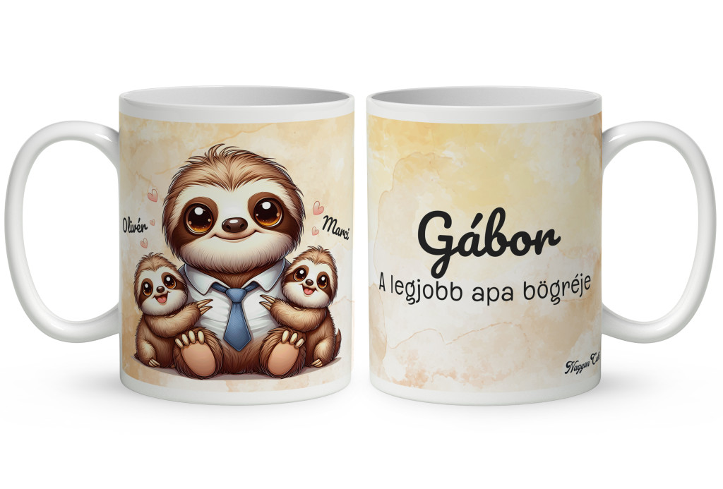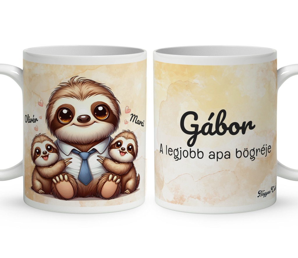Miért válaszd ezt a névre szóló lajhár apa mintás bögrét?