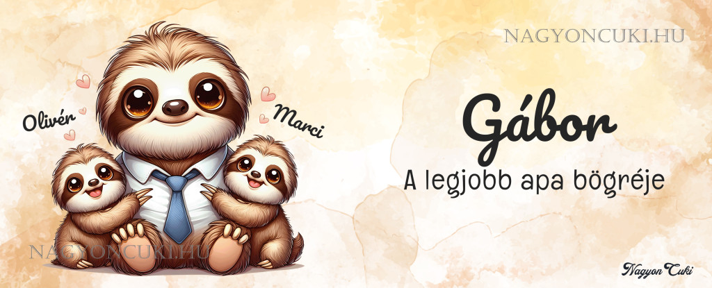 - Teljesen Személyre szabható: Kérd az Apuka nevét a nagy lajhárhoz, és a Gyerekek nevét a kicsikhez! Így válik egyedivé és megismételhetetlenné.