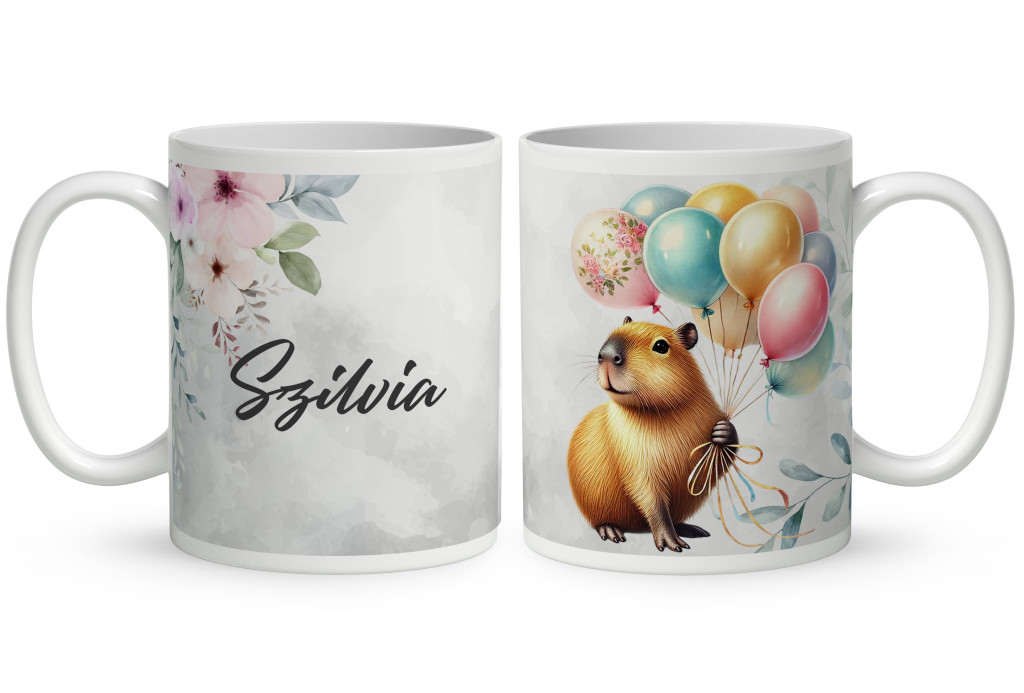 Névvel kérhető - Cuki lufis capybara mintás bögre | Ajándék ötlet Kapibara rajongóknak | nagyoncuki.hu