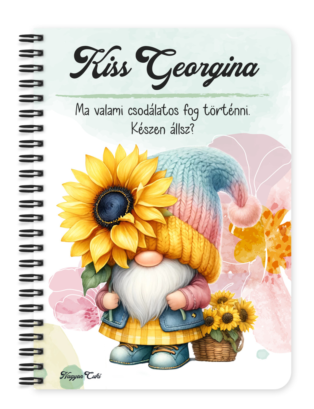Kinek ideális ajándék ez a cuki napraforgós manó mintás füzet?