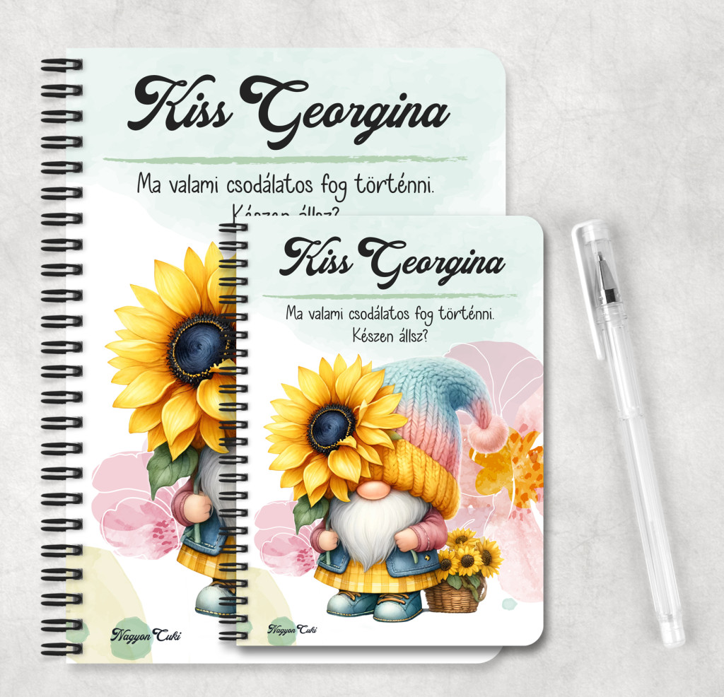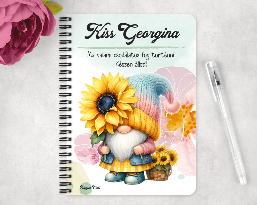 Névvel & Idézettel Kérhető Cuki napraforgós manó egy szál virággal mintás Füzet | Legjobb ajándék Nőknek | nagyoncuki.hu