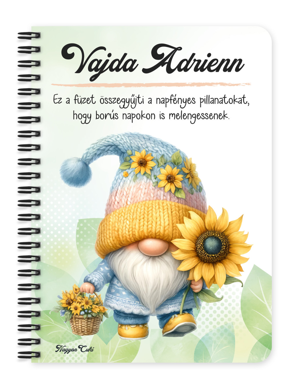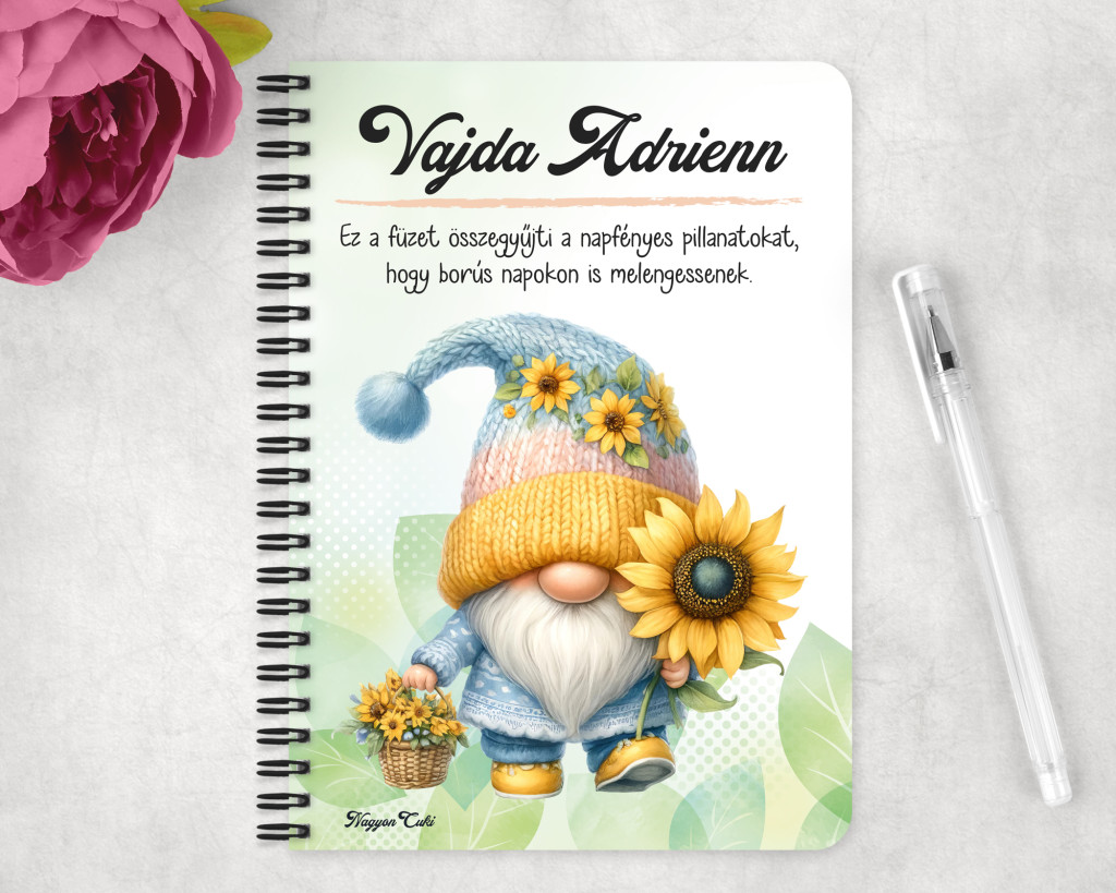 Névvel & Idézettel Kérhető Cuki napraforgós manó kosárral mintás Füzet | Legjobb ajándék Nőknek | nagyoncuki.hu