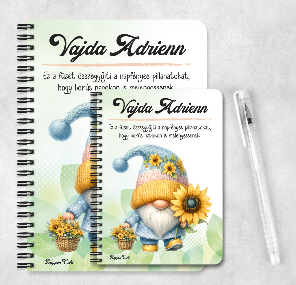 Kinek ideális ajándék ez a cuki napraforgós manó mintás füzet?