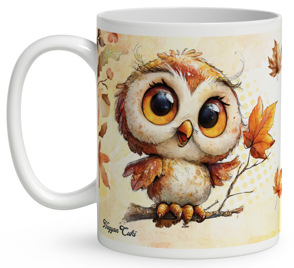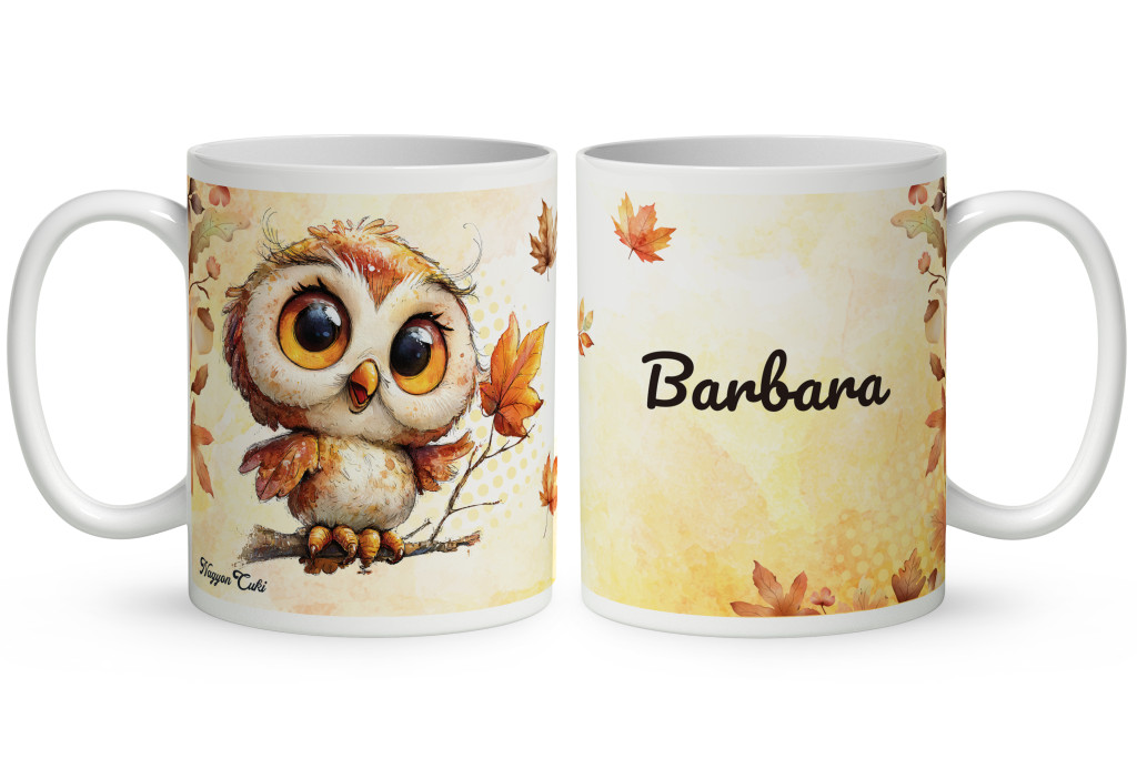 Miért válaszd ezt a névre szóló cuki őszi bagoly mintás bögrét?
