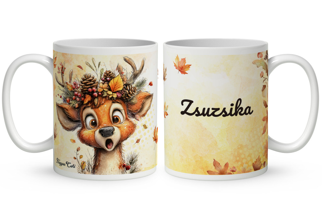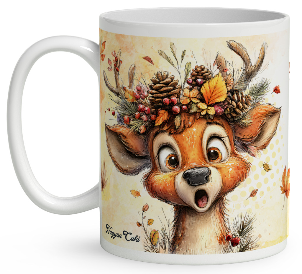 Névvel kérhető - Cuki őszi csodálkozó szarvas mintás bögre | Egyedi Ajándék Szarvas Rajongóknak | nagyoncuki.hu