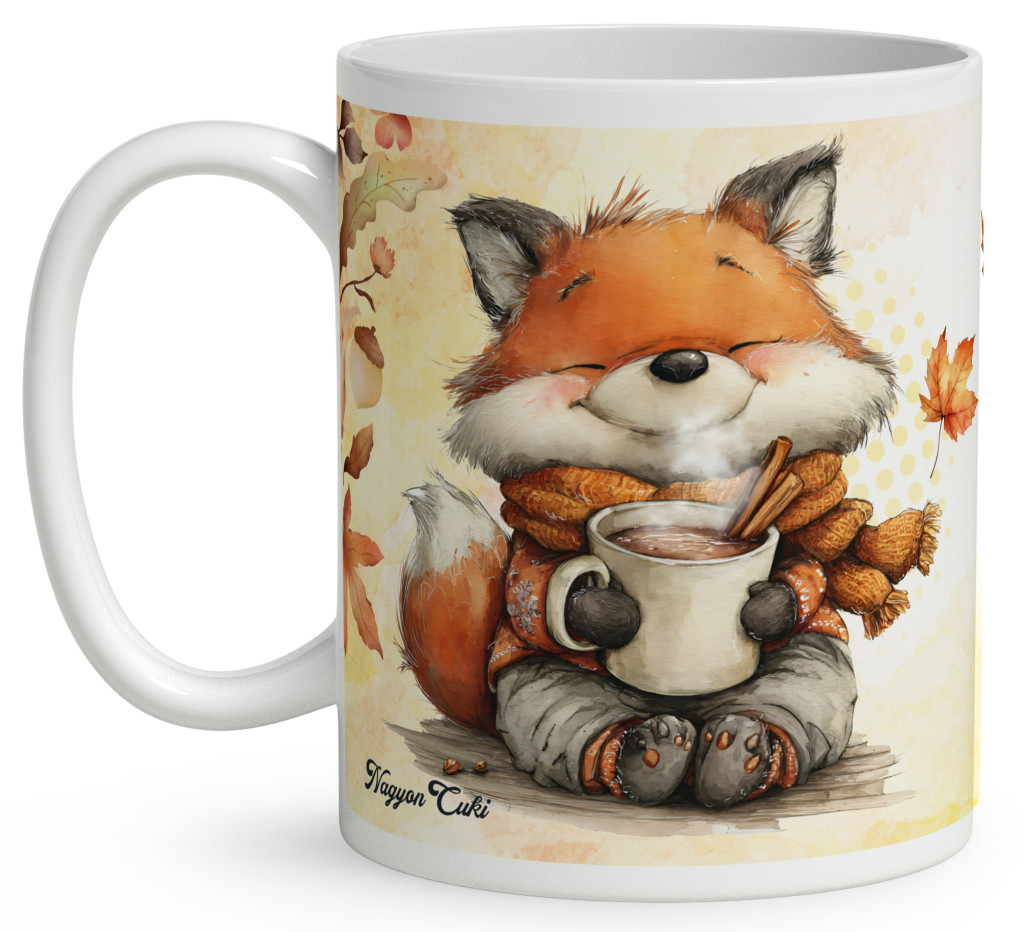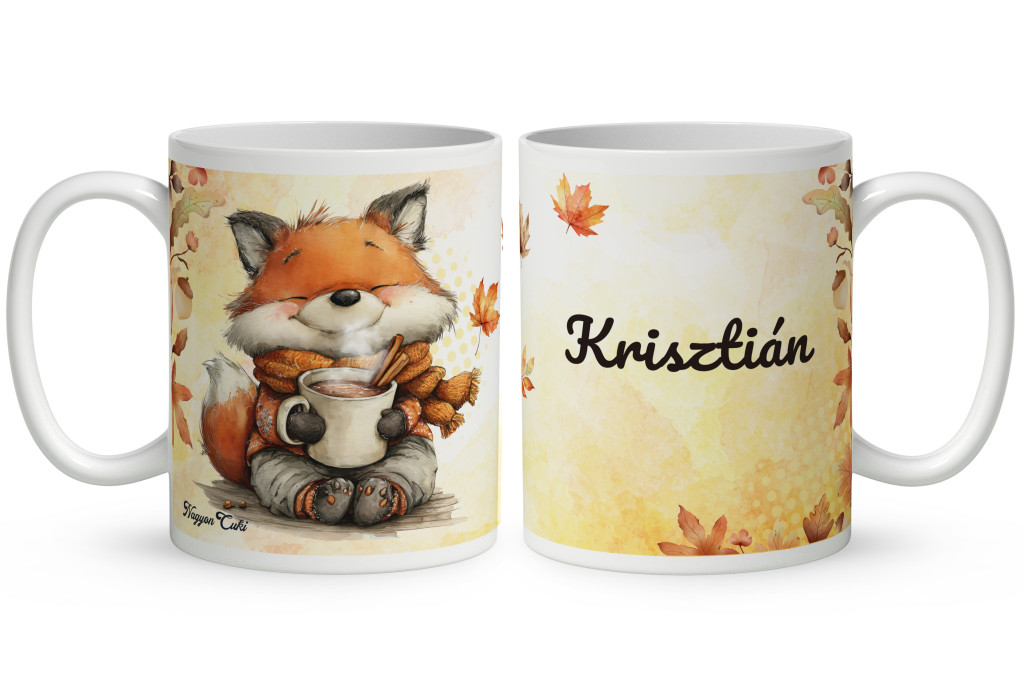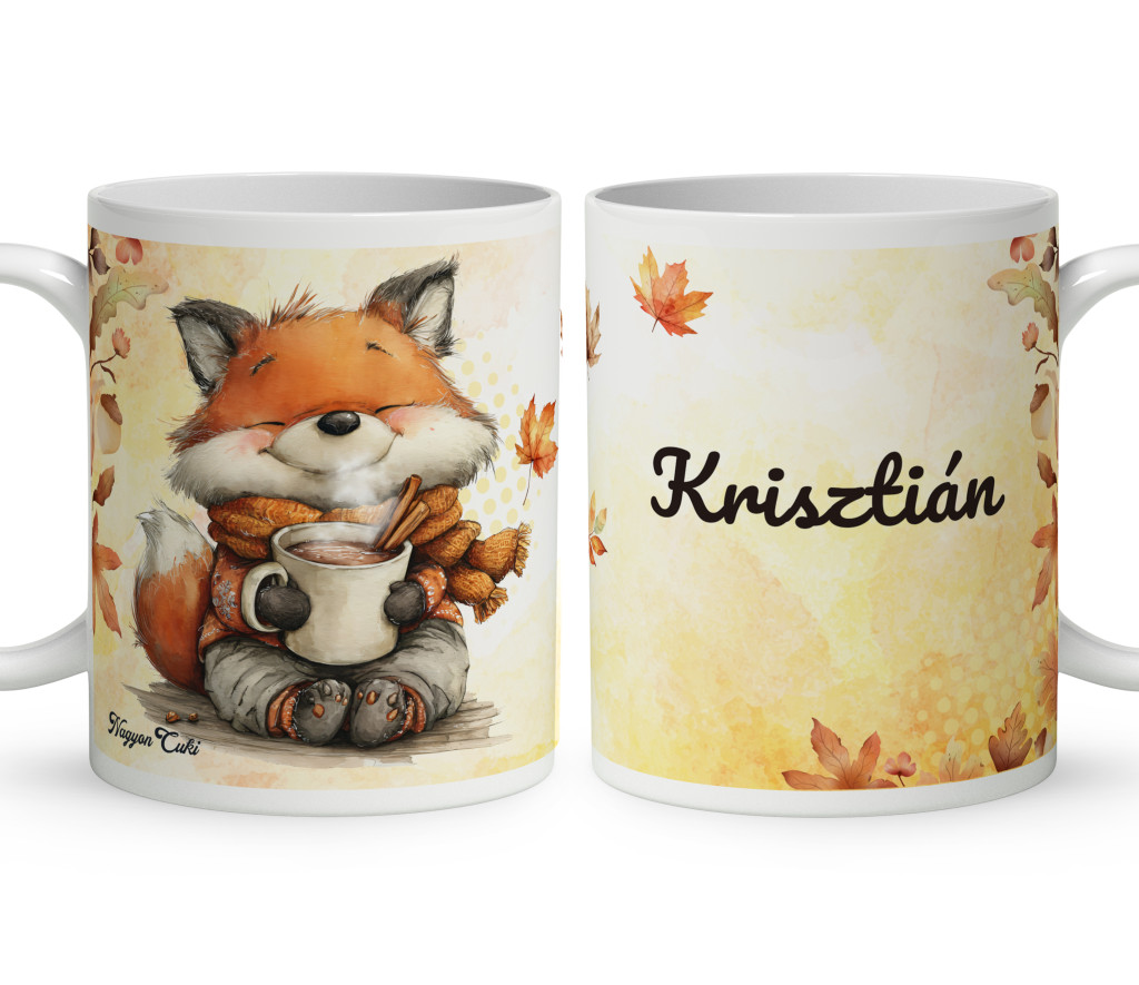 Névvel kérhető - Cuki őszi kávézós róka Bögre mintás Bögre | Egyedi Ajándék Róka Rajongóknak | nagyoncuki.hu