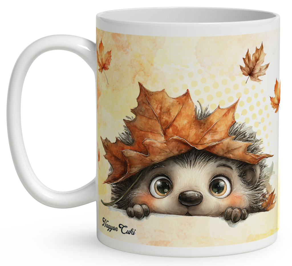 Névvel kérhető - Cuki őszi kukucskáló süni mintás bögre | Egyedi Ajándék Mosómedve Rajongóknak | nagyoncuki.hu