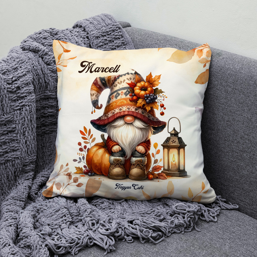 Névvel kérhető - Cuki őszi manó mintás különleges és egyedi párna | A legcukibb ajándék kicsiknek és nagyoknak | nagyoncuki.hu