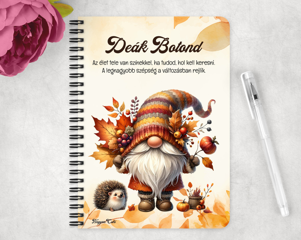 Személyre szabható - Cuki őszi manó sünikével mintás füzet mintás Füzet | Egyedi Ajándék Nőknek & Személyes Napló | nagyoncuki.hu