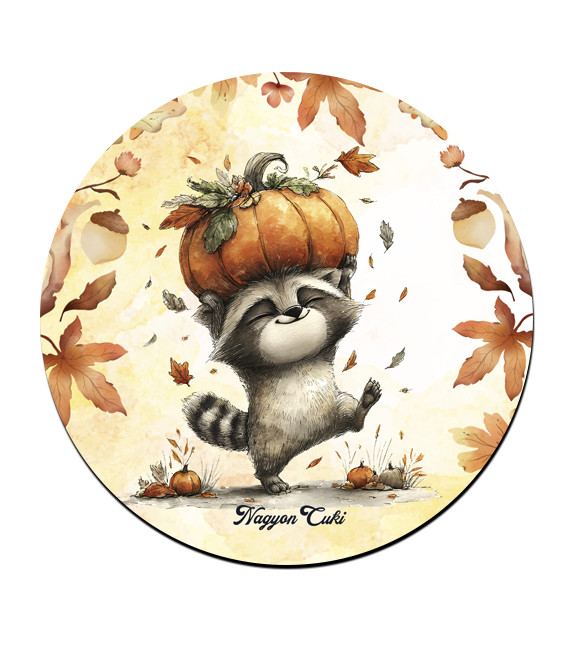 Cuki őszi mosómedve és a tök mintás Poháralátét | Egyedi Ajándék Mosómedve rajongóknak & Otthon Dekor | nagyoncuki.hu