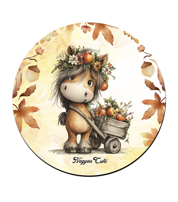 Cuki őszi póni almával mintás Poháralátét | Egyedi Ajándék Lovas rajongóknak & Otthon dekor| nagyoncuki.hu