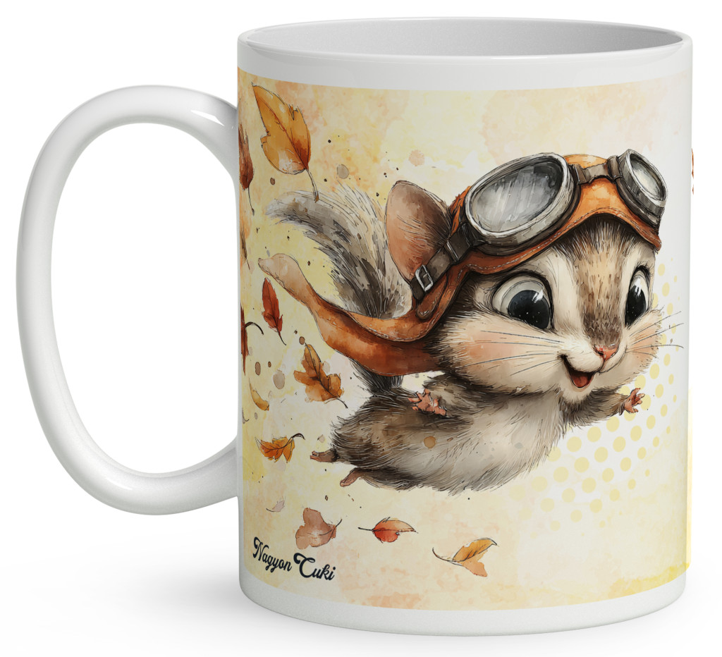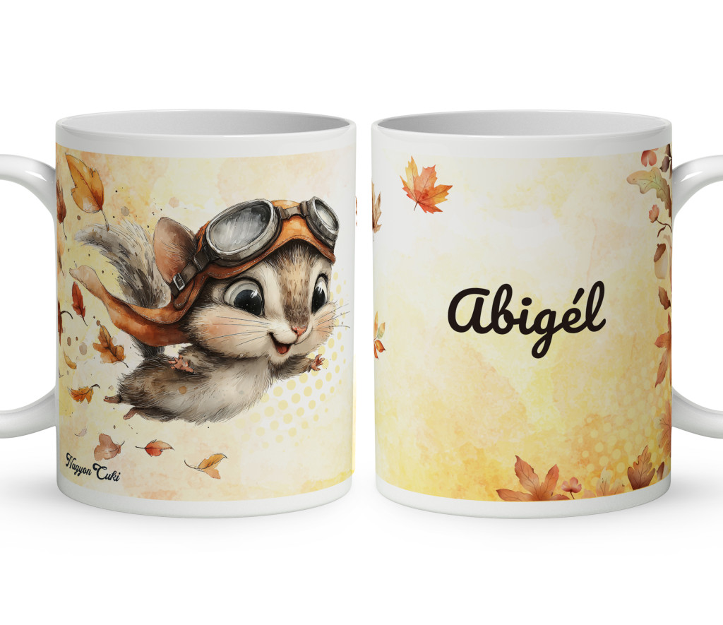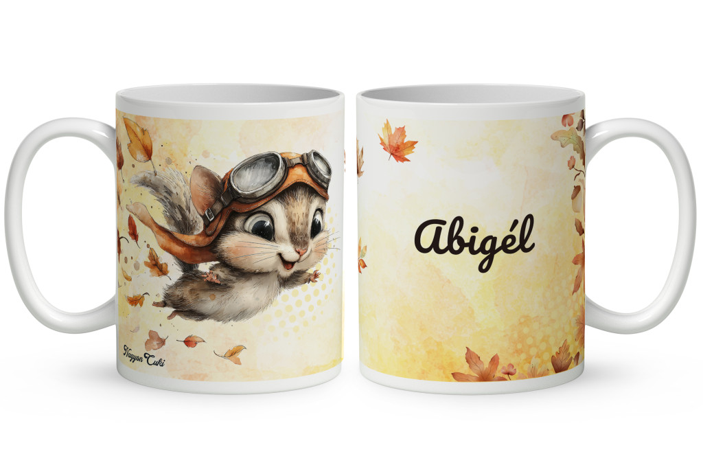 Névvel kérhető - Cuki őszi repülő mókus mintás bögre | Egyedi Ajándék Mókus Rajongóknak | nagyoncuki.hu