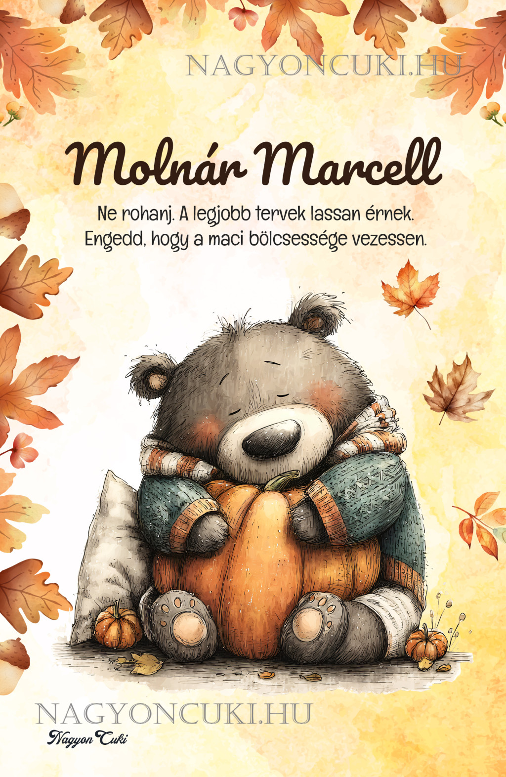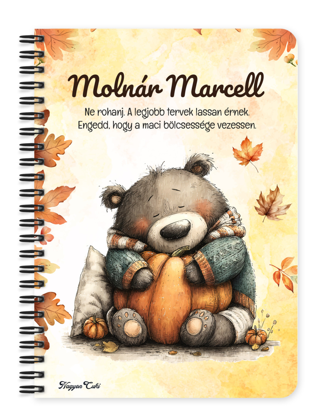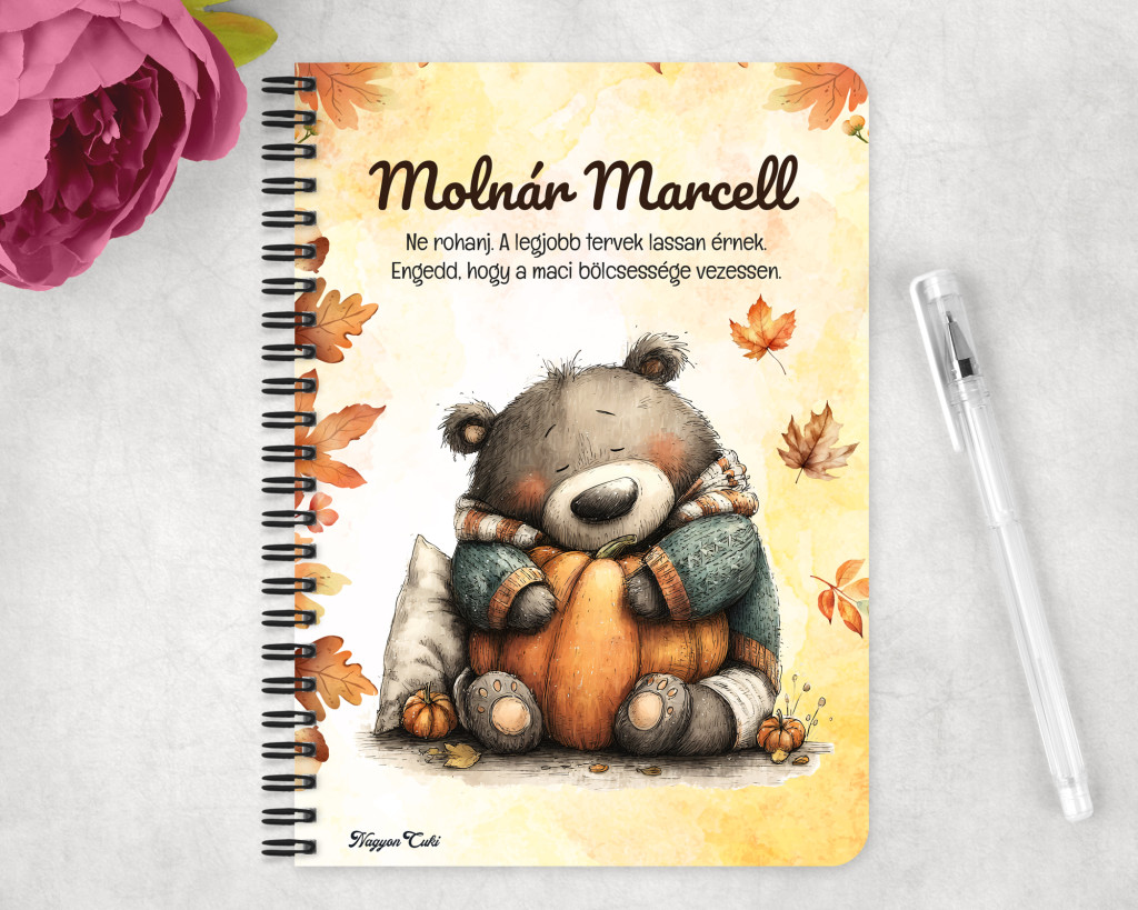 Névvel & Idézettel Kérhető Cuki őszi szundi maci és a tök mintás Füzet | Névre Szóló Ajándék & Személyes Macis Napló, Jegyzetfüzet | nagyoncuki.hu