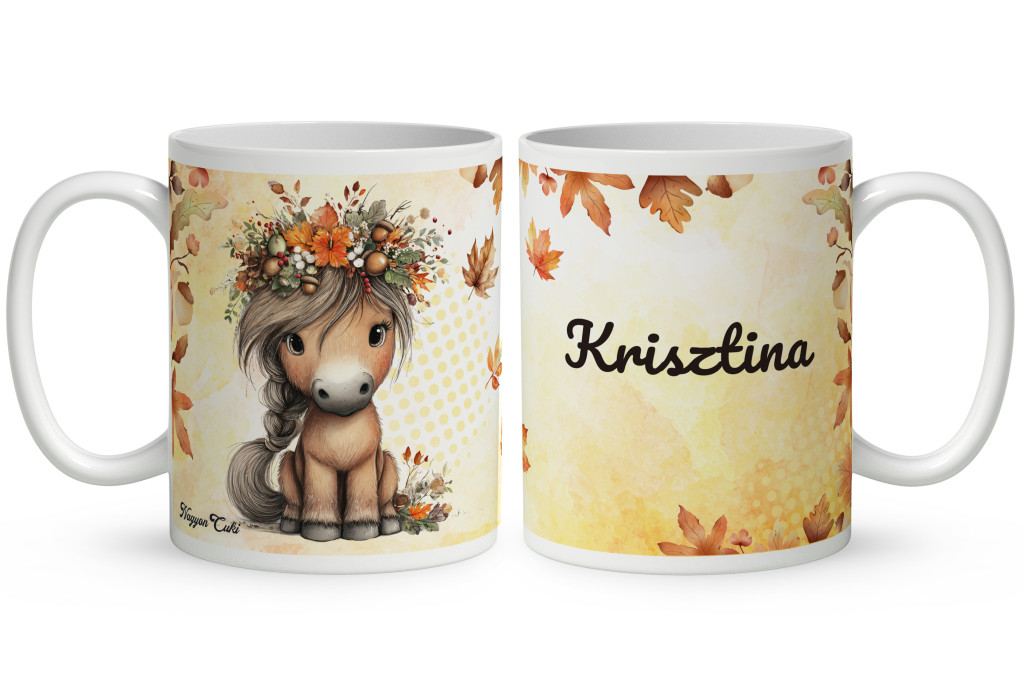Lepd meg a kedvenc hölgyedet, barátodat, családtagodat vagy saját magadat ezzel a bájos és személyre szabott aranyos őszi lovas mintás bögrével! Rendeld meg most ezt az egyedi, névre szóló póni lovas mintás bögrét, és vigyél egy kis extra jóérzést és inspirációt a mindennapokba!