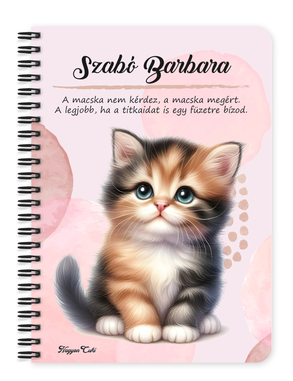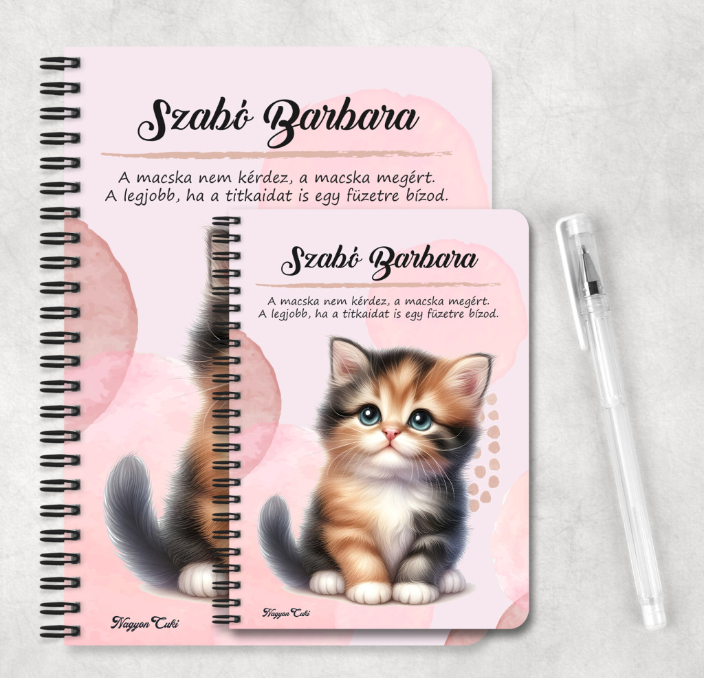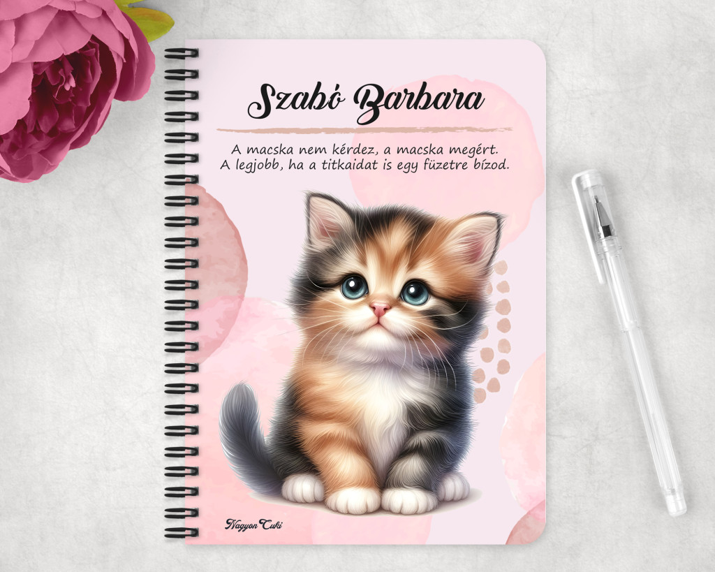 Névvel & Idézettel Kérhető Cuki tarka cicus mintás Füzet | Egyedi Ajándék Macska Rajongóknak | nagyoncuki.hu