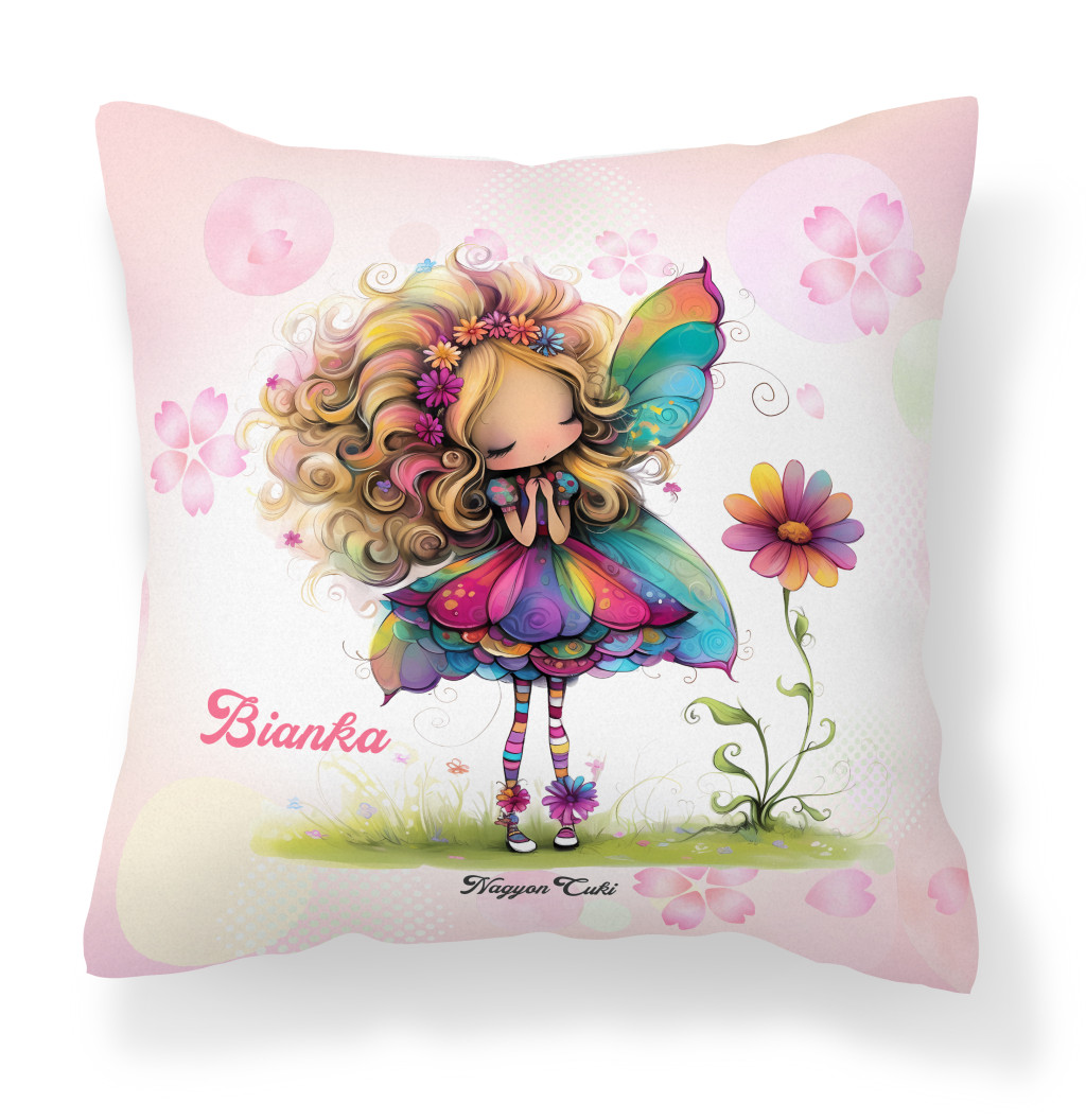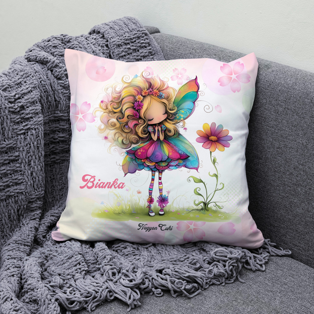 Névvel kérhető - Cuki virág tündér pillangóval Párna | Egyedi Ajándék Nőknek & Személyes Tündéres Dekoráció | nagyoncuki.hu