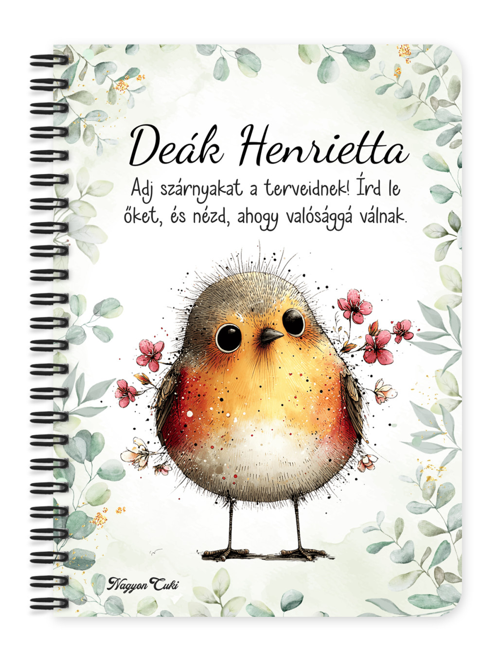 Vidd haza a tavasz frissességét! Rendeld meg most ezt az egyedi, névre szóló Cuki Tavaszi vörösbegy mintás füzetet, és adj teret a legszebb gondolatoknak...mert mindenkinek jár egy kis cukiság.