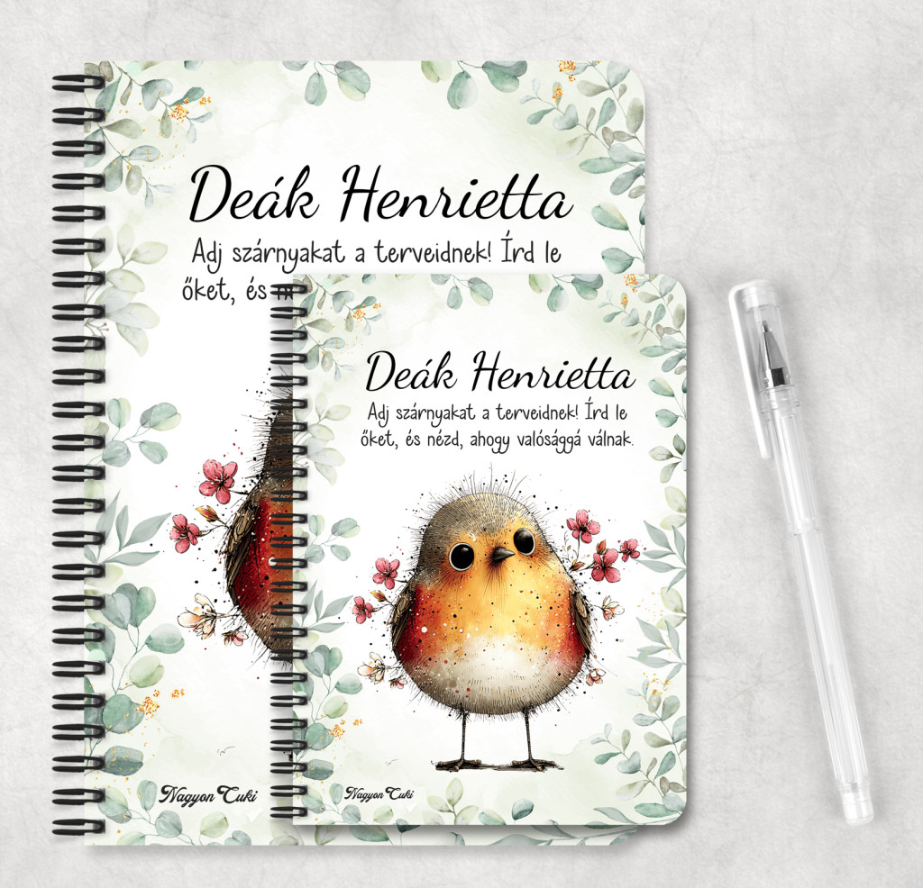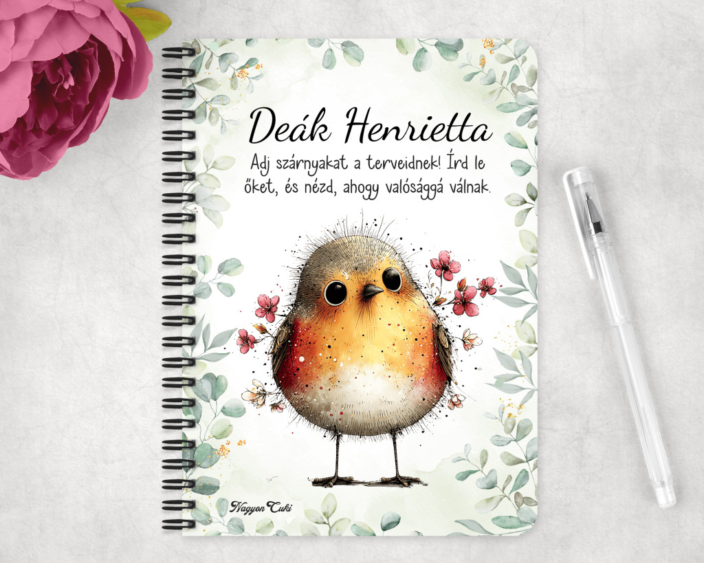 Névvel & Idézettel Kérhető - Cuki vörösbegy, a barátságos kertész mintás Füzet / Napló | Névre Szóló Ajándék & Személyes Jegyzetfüzet | nagyoncuki.hu