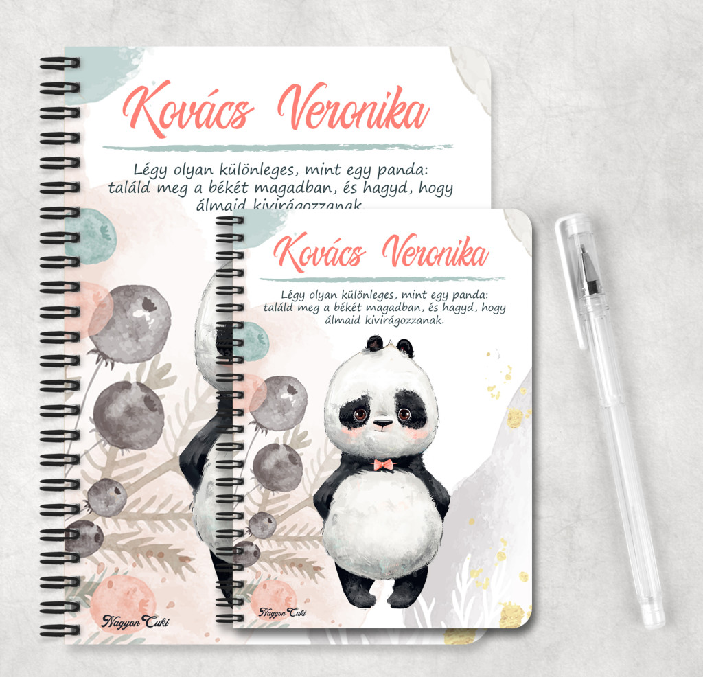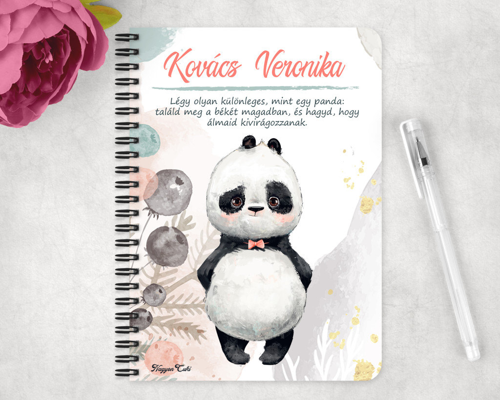 Rendeld meg most ezt a teljesen személyre szabható, egyedi panda füzetet, és vigyél egy ölelésnyi nyugalmat a mindennapokba...mert mindenkinek jár egy kis cukiság.
