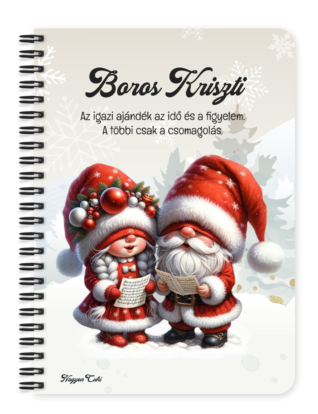 Képzeld el azt az ünnepi mosolyt és inspirációt a megajándékozott arcán, amikor egy olyan füzetet tart a kezében, amely nemcsak a karácsonyi terveit, receptjeit vagy fontos jegyzeteit őrzi, hanem a manók varázslatos karácsonyi világa iránti szeretetét is tükrözi!