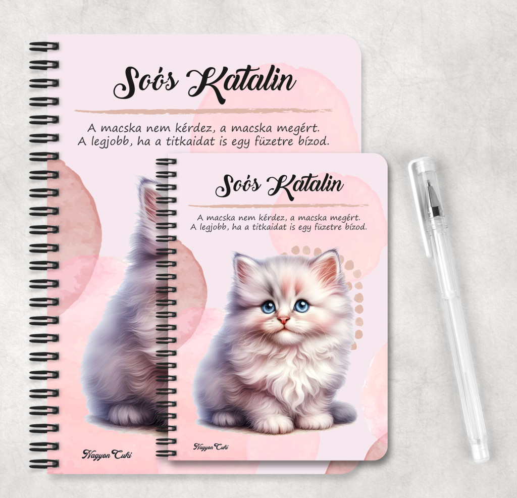 - Gazdiknak: Akik büszkén viselnék a cicájuk nevét egy ilyen cuki füzeten.