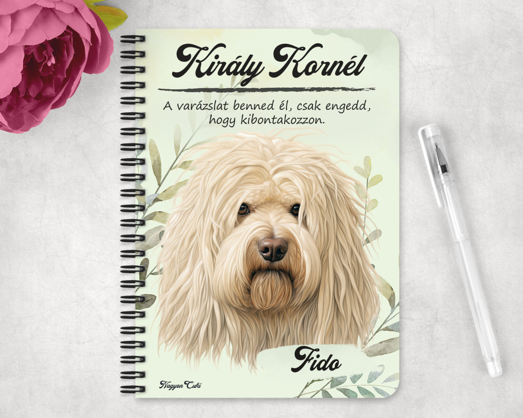 Névvel & Idézettel Kérhető - Fehér puli portré kutyás Füzet | Egyedi Ajándék Kutyásoknak & Személyre Szabható Kutyás Ajándék | nagyoncuki.h