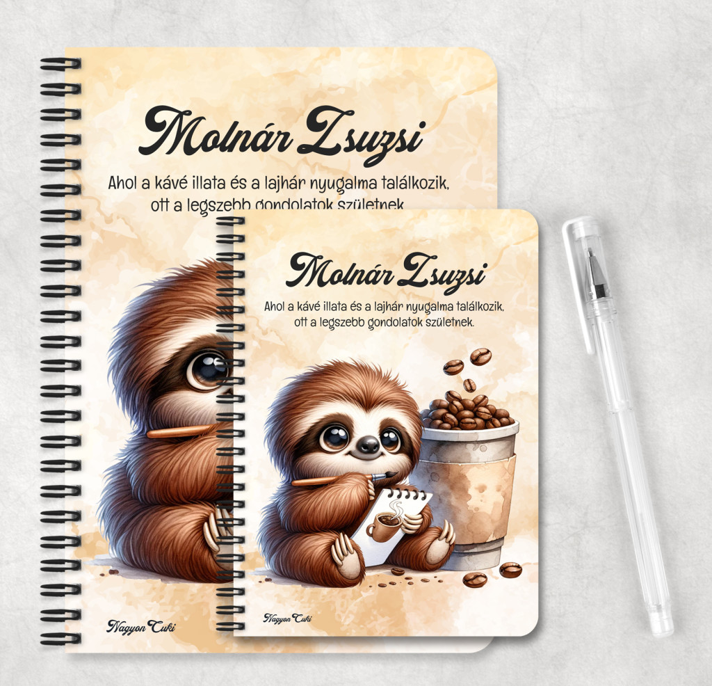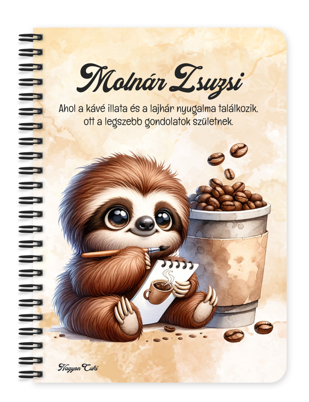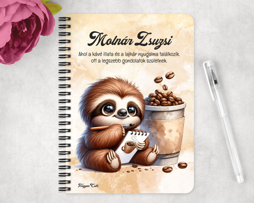 Névvel & Idézettel Kérhető Festő kávés lajhár mintás Füzet | Legjobb ajándék Nőknek & Személyes napló| nagyoncuki.hu